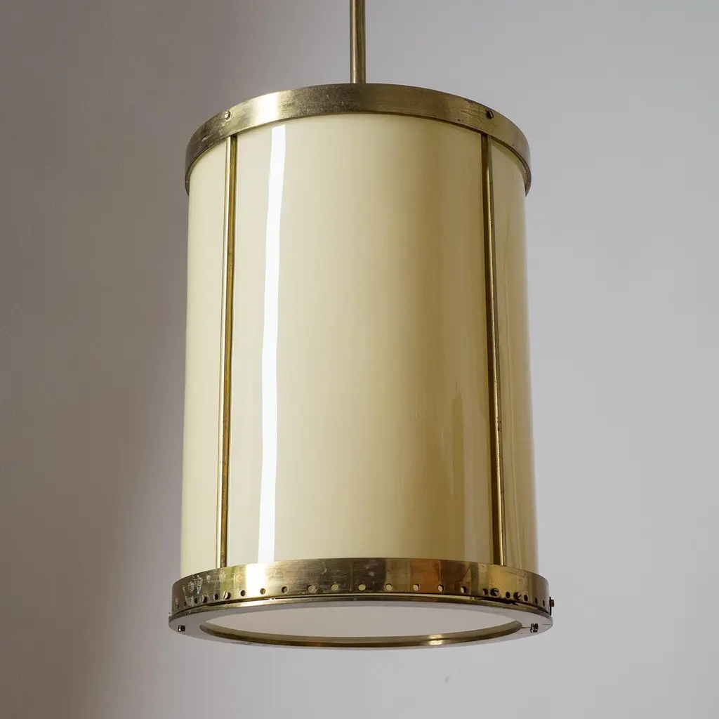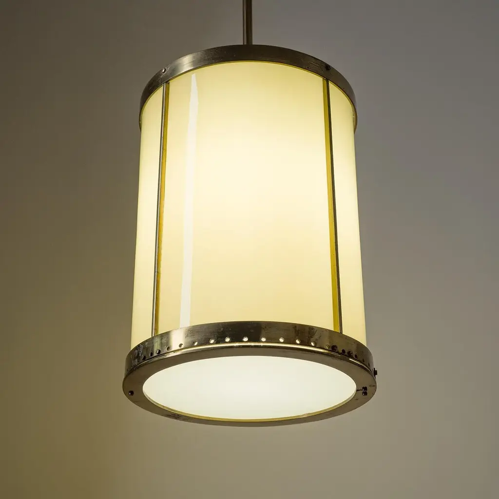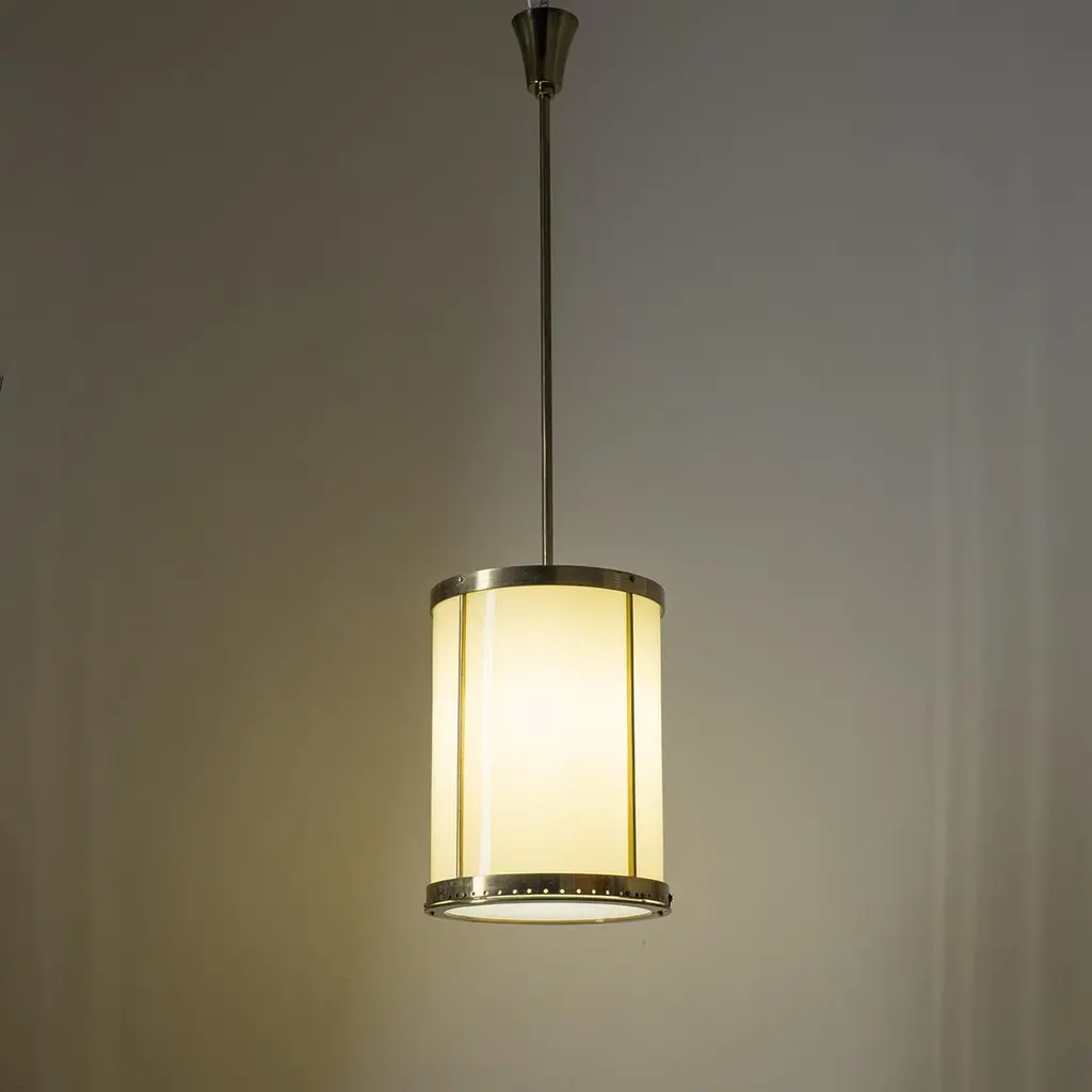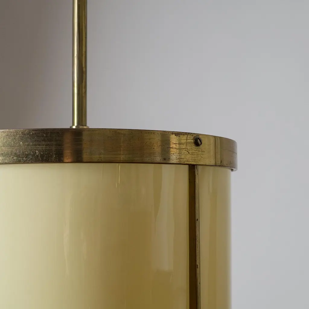 Oversize Drum Lantern, 1930s, Sand-Colored Glass And Brass