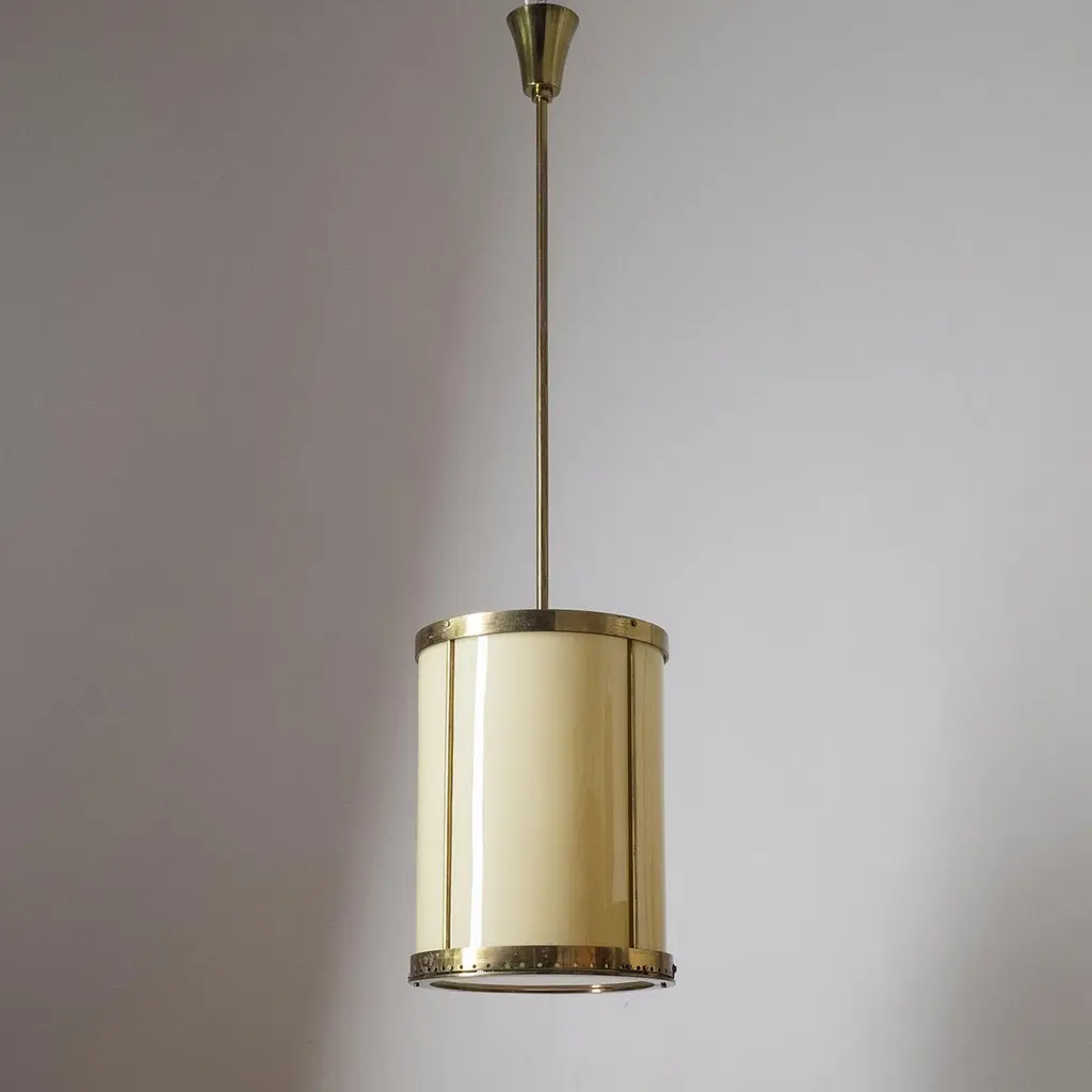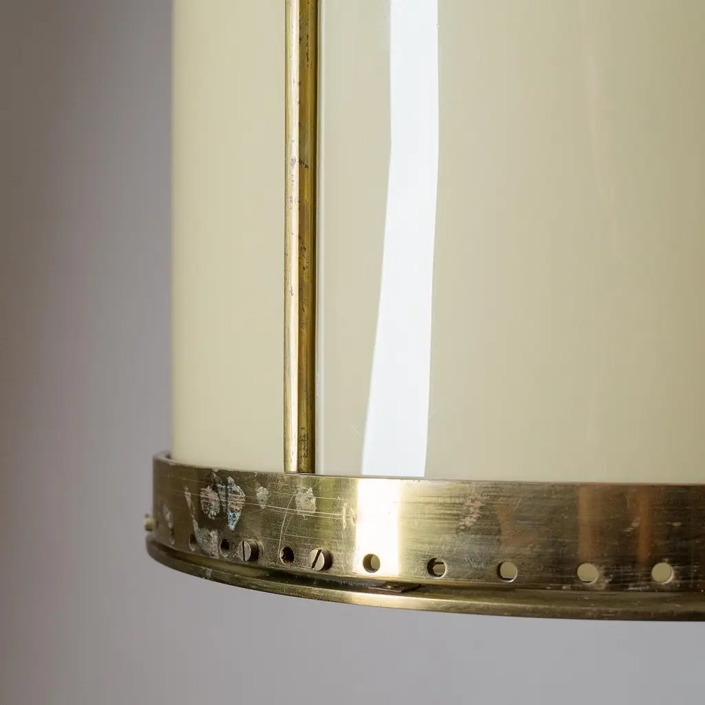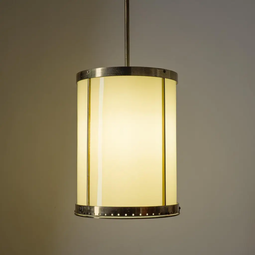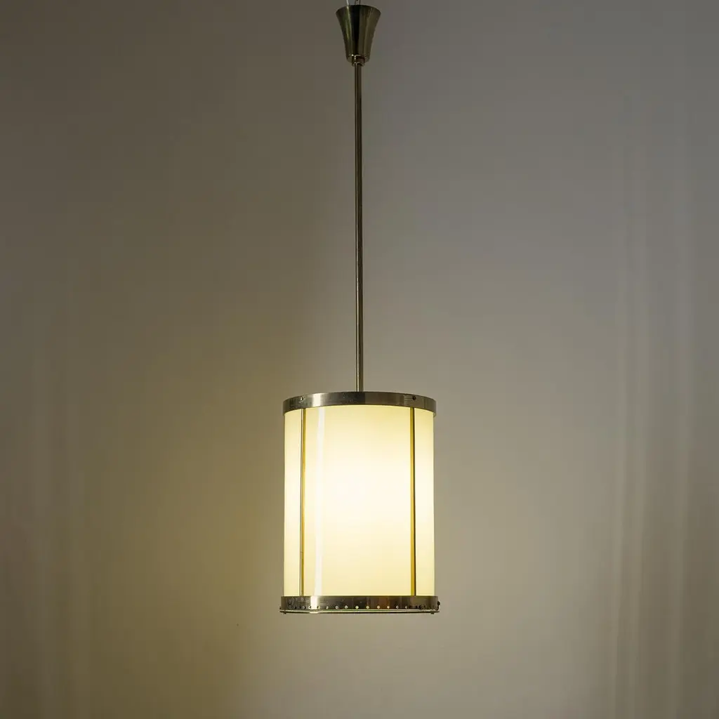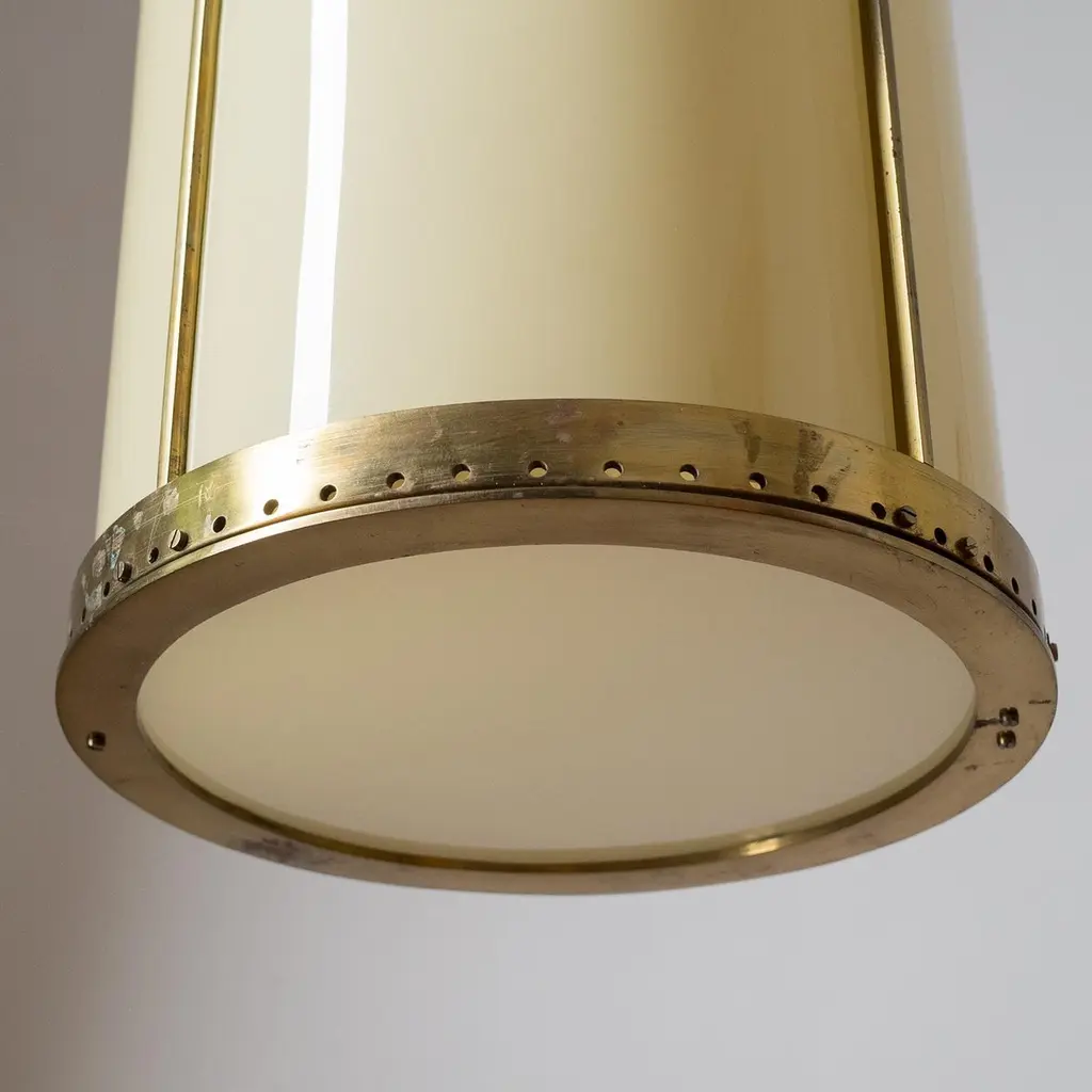 Oversize Drum Lantern, 1930s, Sand-Colored Glass And Brass