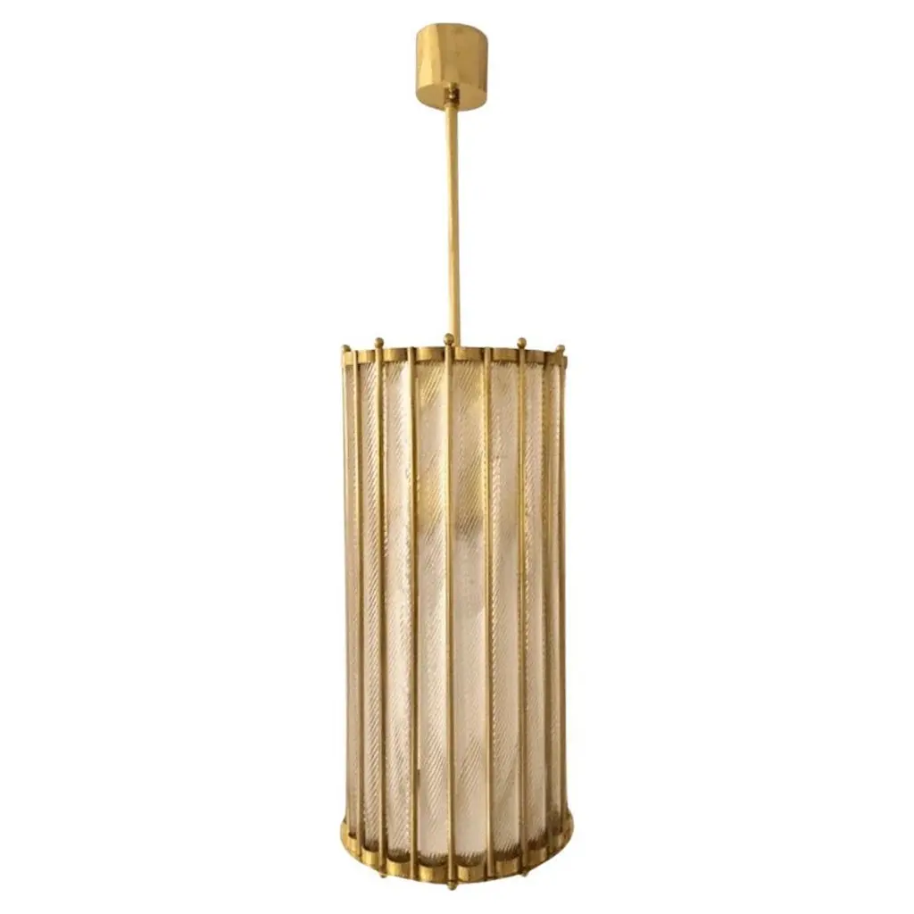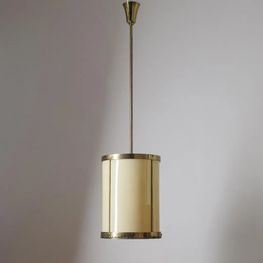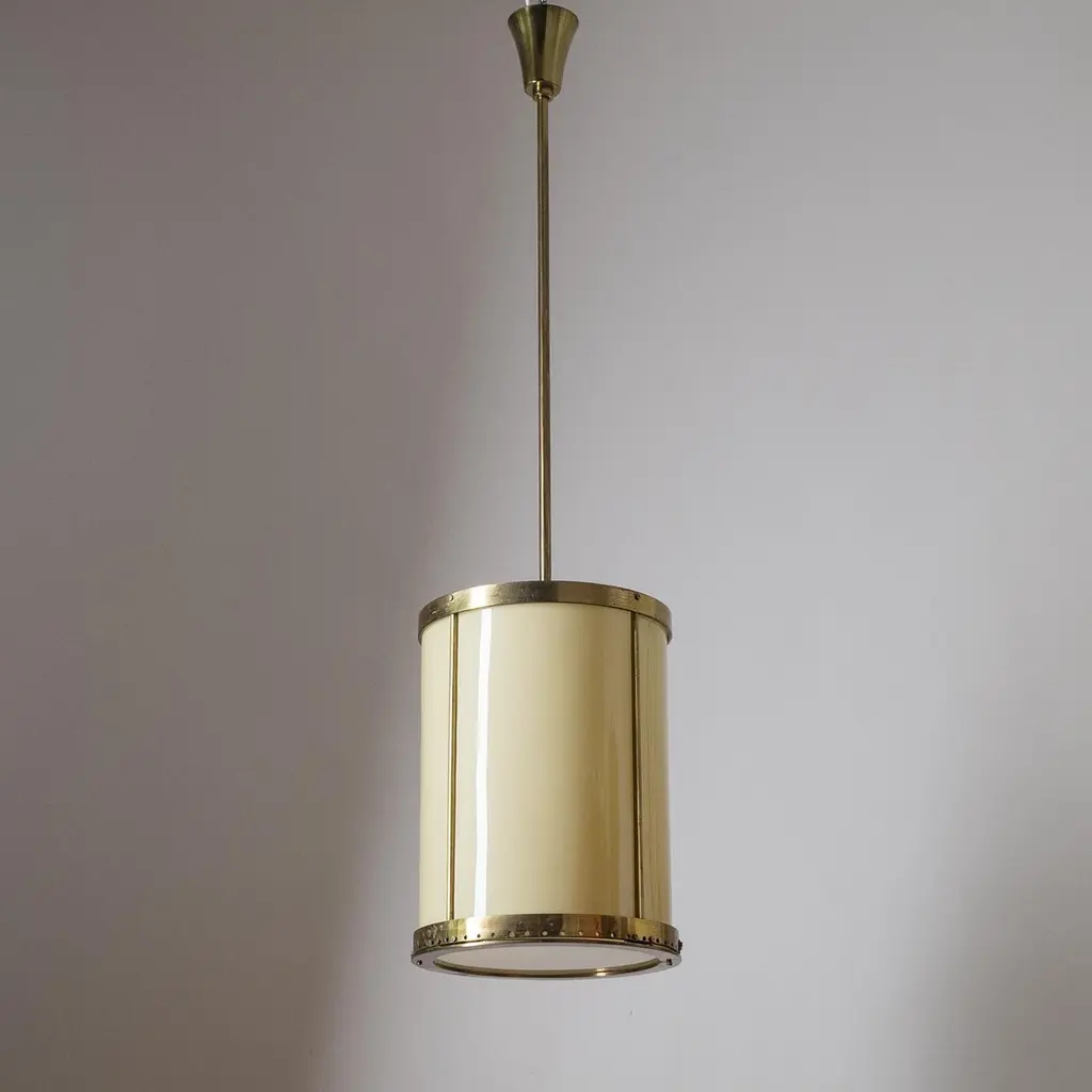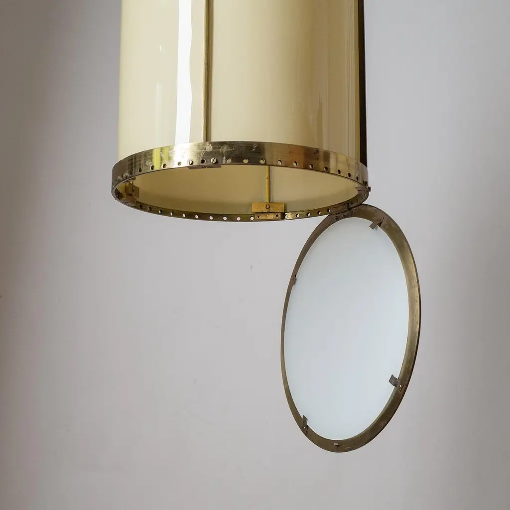 Oversize Drum Lantern, 1930s, Sand-Colored Glass And Brass