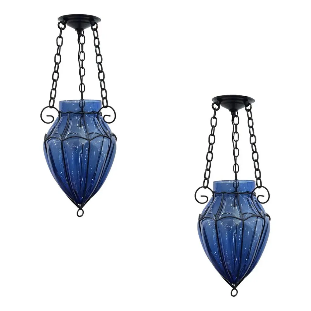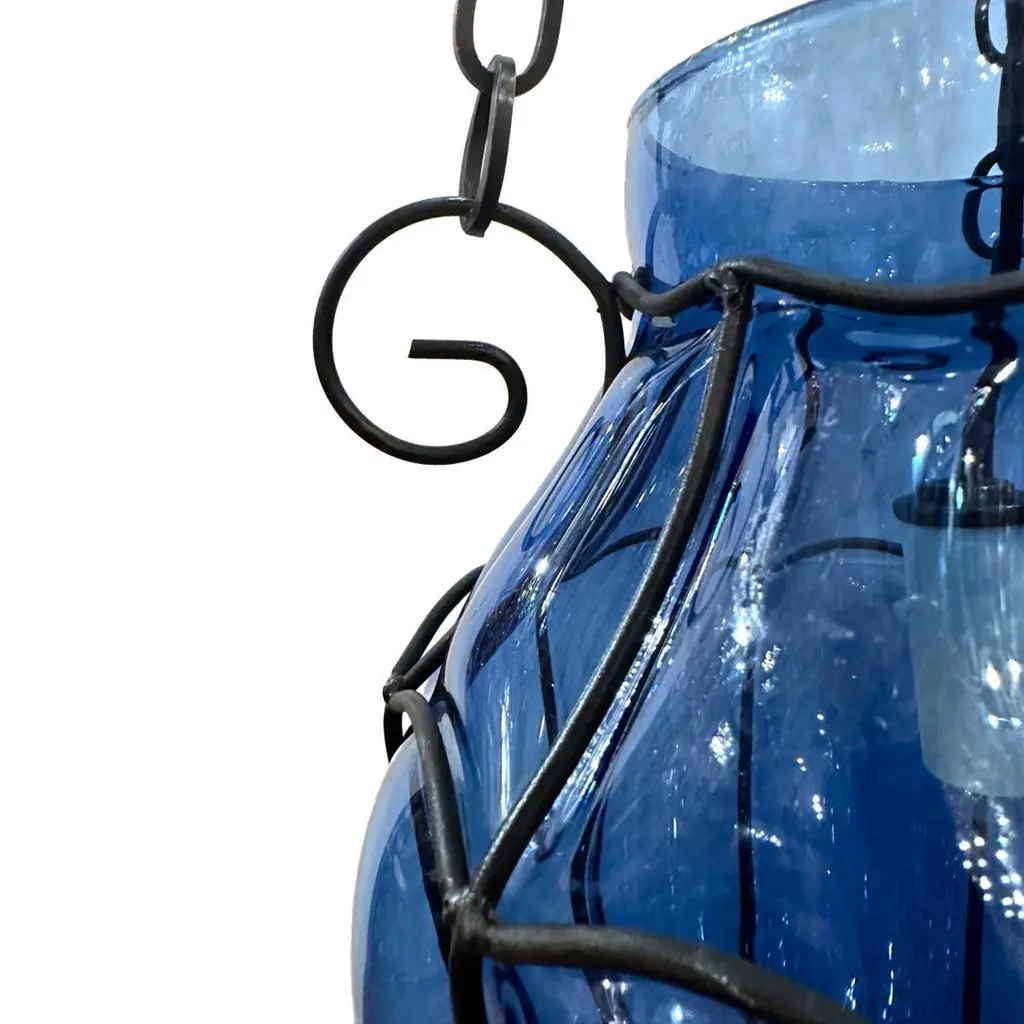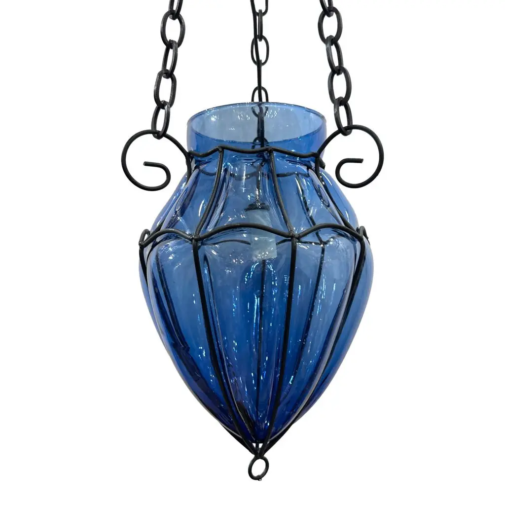 Pair of circa 1960's Italian blown glass lanterns with 1 interior light each. Sold individually.Measurements:Drop: 20"Diameter: 8"