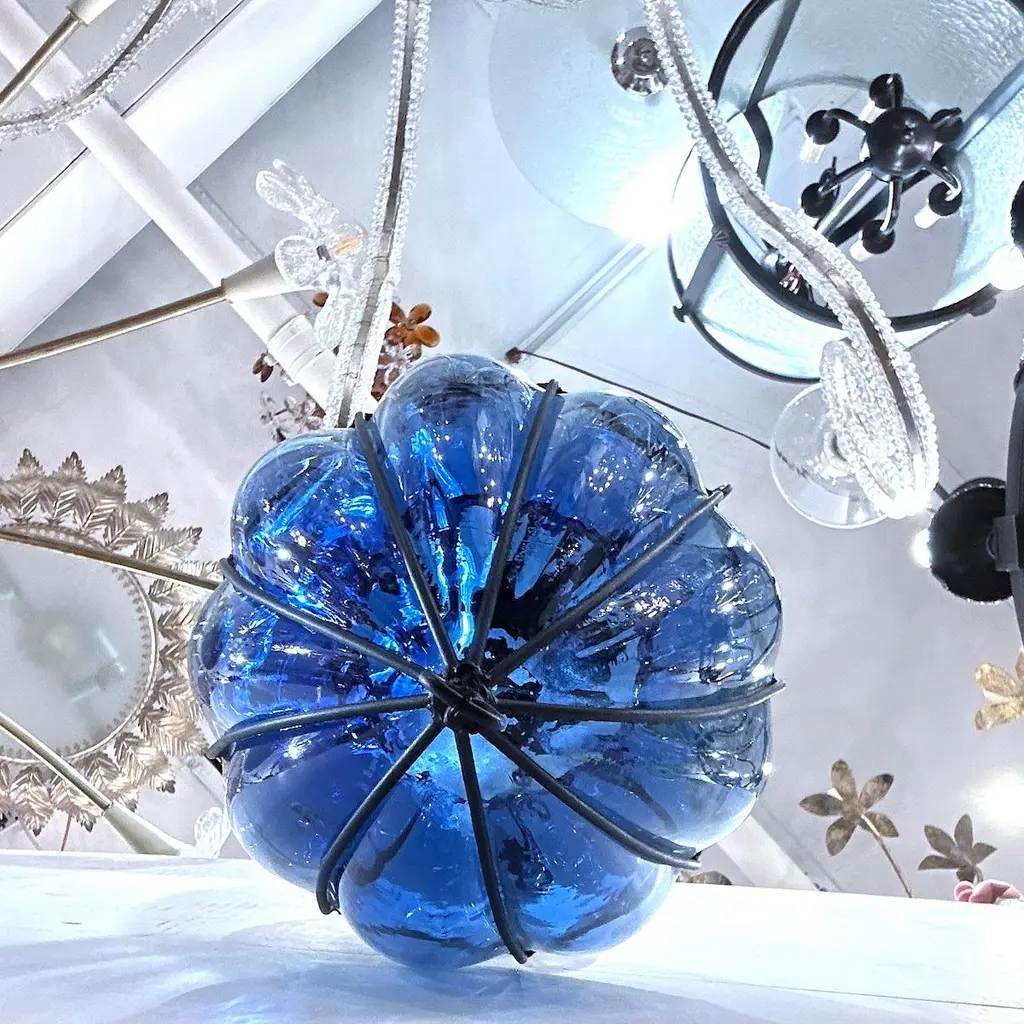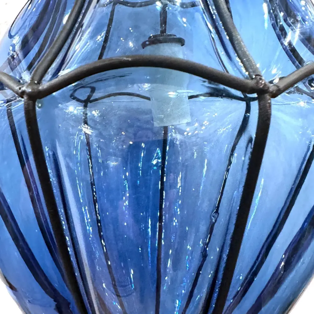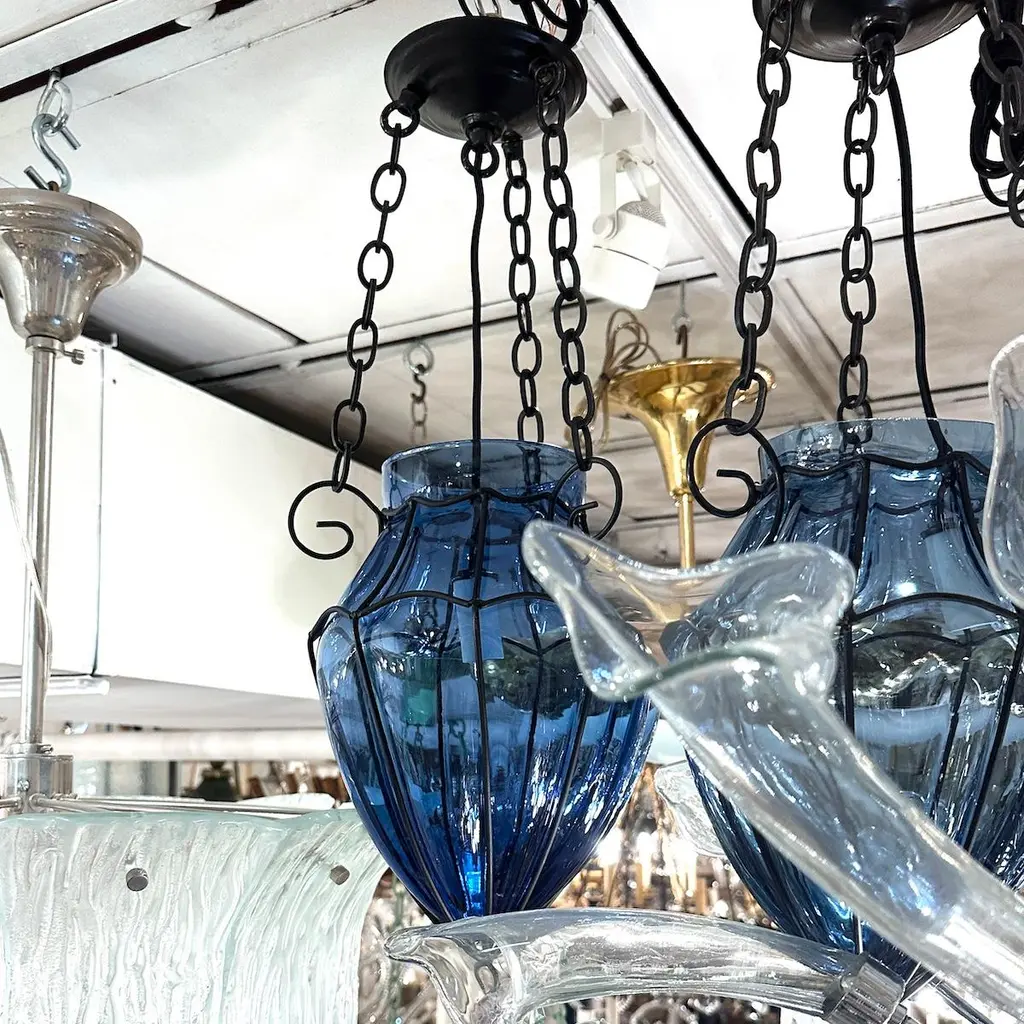 Pair of circa 1960's Italian blown glass lanterns with 1 interior light each. Sold individually.Measurements:Drop: 20"Diameter: 8"