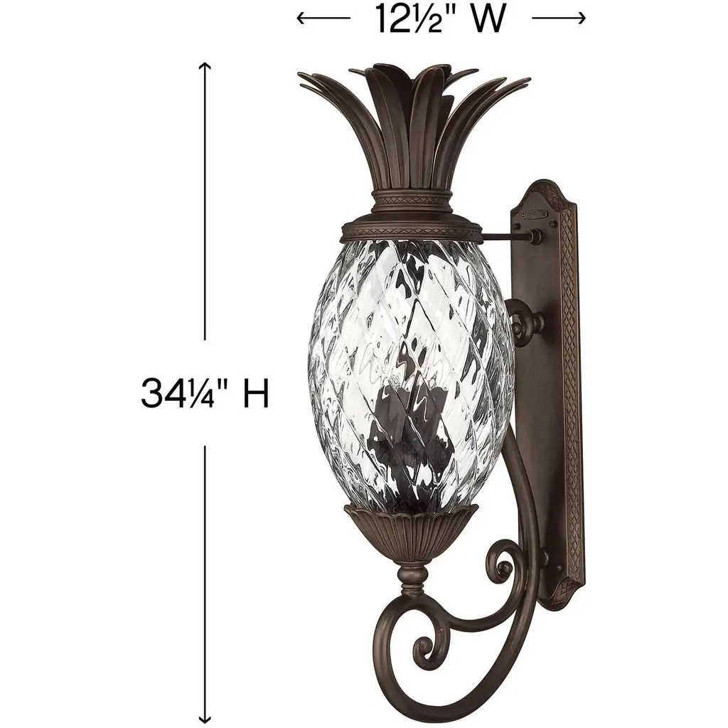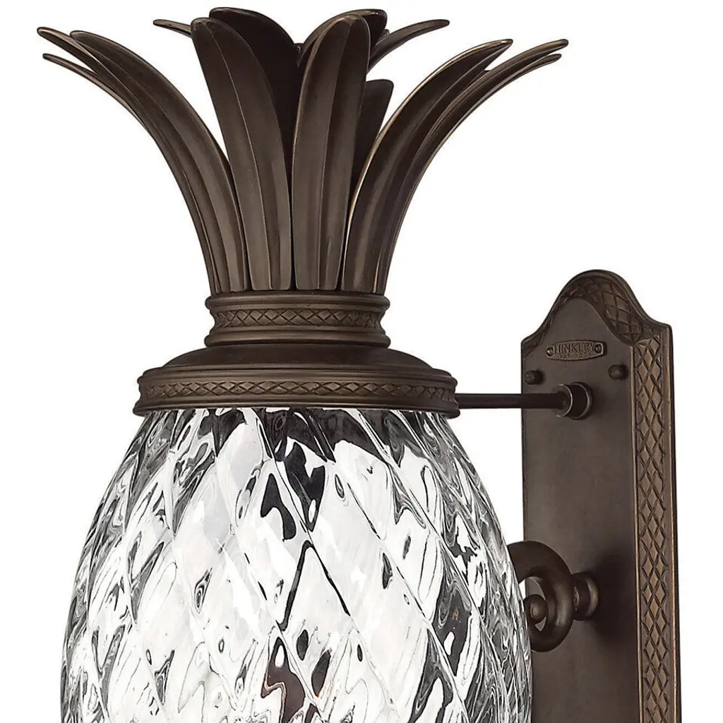 A Hinkley classic, the ornate Plantation collection features exceptional pineapple shaped, clear optic glass that makes a noble statement with matching candle sleeves and elaborate, decorative cast detailing.
