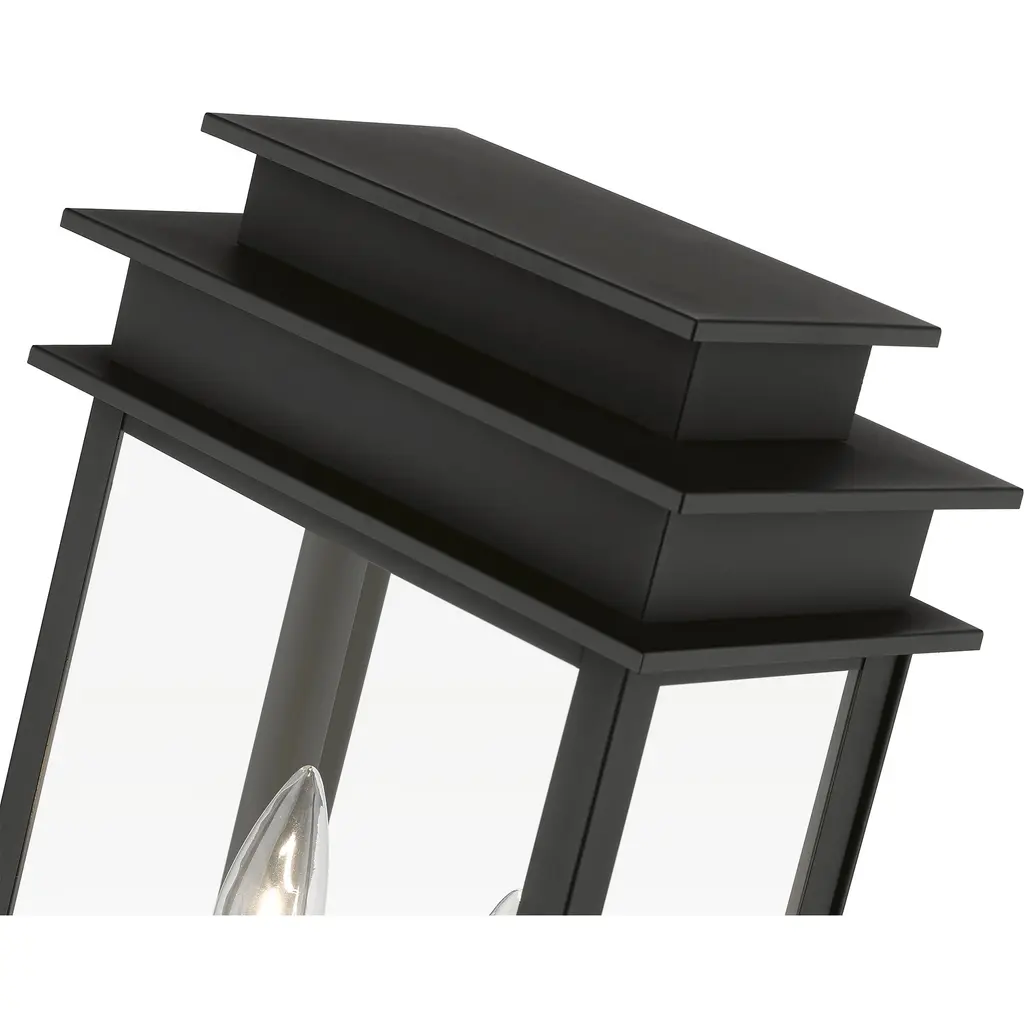 2 Light Black with Polished Chrome Stainless Steel Reflector Outdoor Large Post Top Lantern