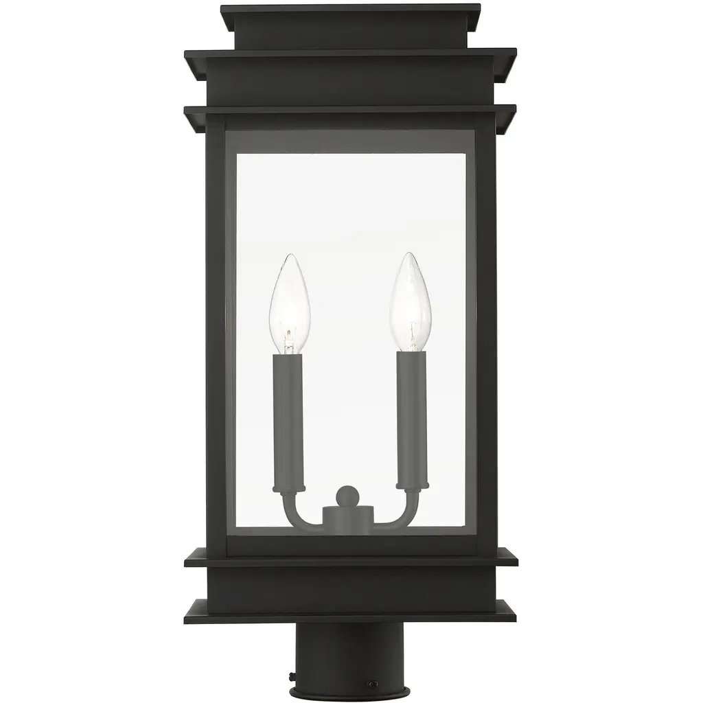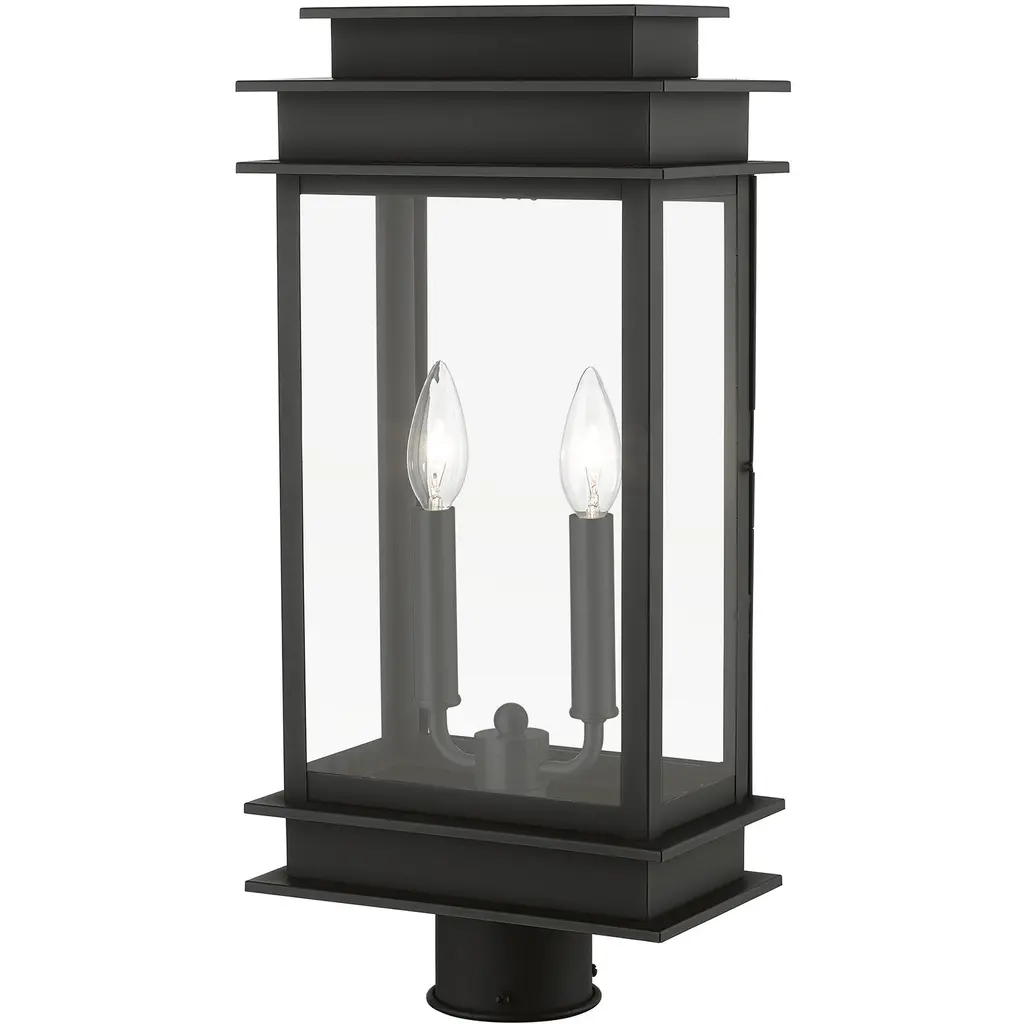 Princeton 2 Light 21 Inch Black With Polished Chrome Outdoor Post Top Lantern, Large