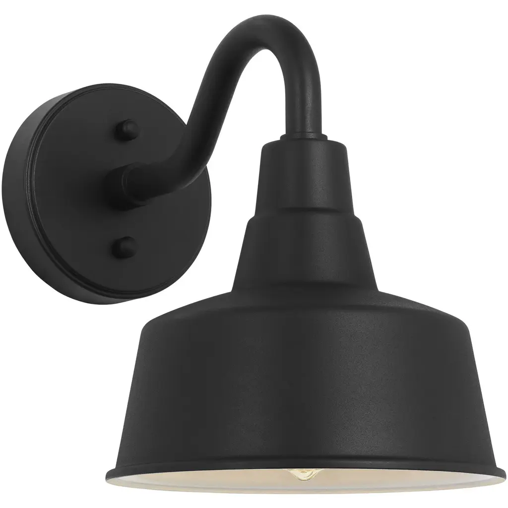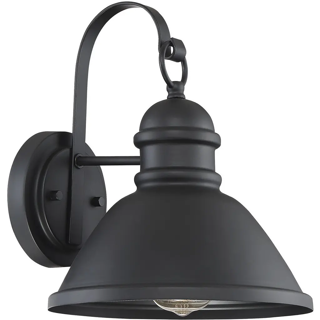 Introducing the Bayside Wall Lantern from Progress Lighting. This nautical-inspired fixture is made from non-metallic polycarbonate, ideal for coastal use. The black finish adds elegance to outdoor spaces. Measuring 9.37" in width, 10" in height, and extending 8" from the wall, this wet-rated lantern features a 5.5" height from the outlet box, a 5" backplate width, and a 1.25" backplate length. With a Dark Sky-friendly shade, it minimizes light pollution. It uses one 40-watt incandescent bulb (sold separately) and is dimmable with a dimmable bulb. cULus Wet location listed with a 1-Year Limited Warranty. Easy to install with included hardware and instructions. Perfect for porches, patios, and outdoor entertaining areas.