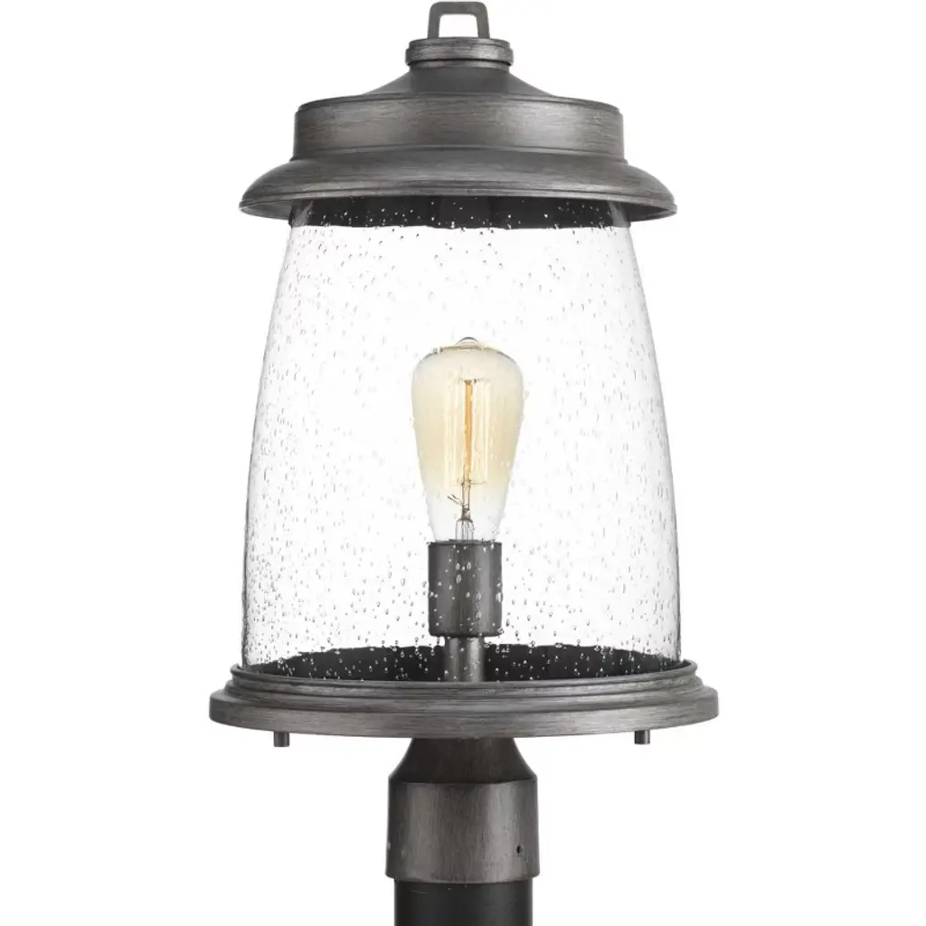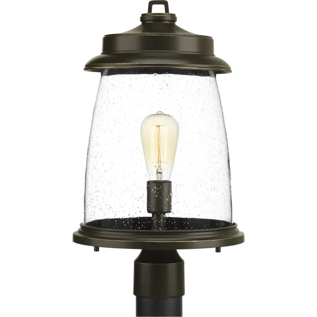 Progress Lighting, Conover, 1-light, Post Lantern, Antique Bronze, Seeded Glass Shade