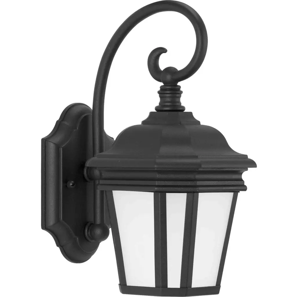 Progress Lighting Crawford 1-light Outdoor Wall Lantern In Black With Etched White Glass Shade