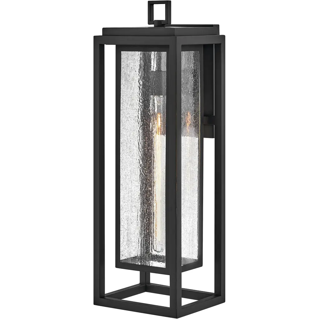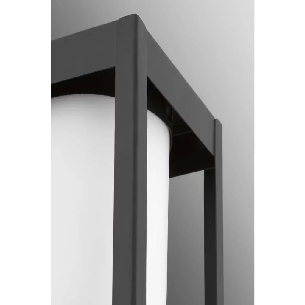 Introducing the Progress Lighting Patewood Collection One-Light Large Wall Lantern. This modern outdoor wall lantern features a sleek Black finish and a durable stainless steel construction, ensuring years of reliability. The shadowbox housing adds a contemporary touch, while the pillar candle style diffusers provide crisp illumination for a pleasing complement to your home's exterior. With a width of 7", height of 17.38", and a depth of 7.75", this wet-rated wall lantern is perfect for outdoor spaces. It uses incandescent lighting with a wattage of 100 watts and comes with a shade included, measuring 4.5 x 10 inches. Elevate your outdoor lighting with the stylish and functional Patewood Collection wall lantern.