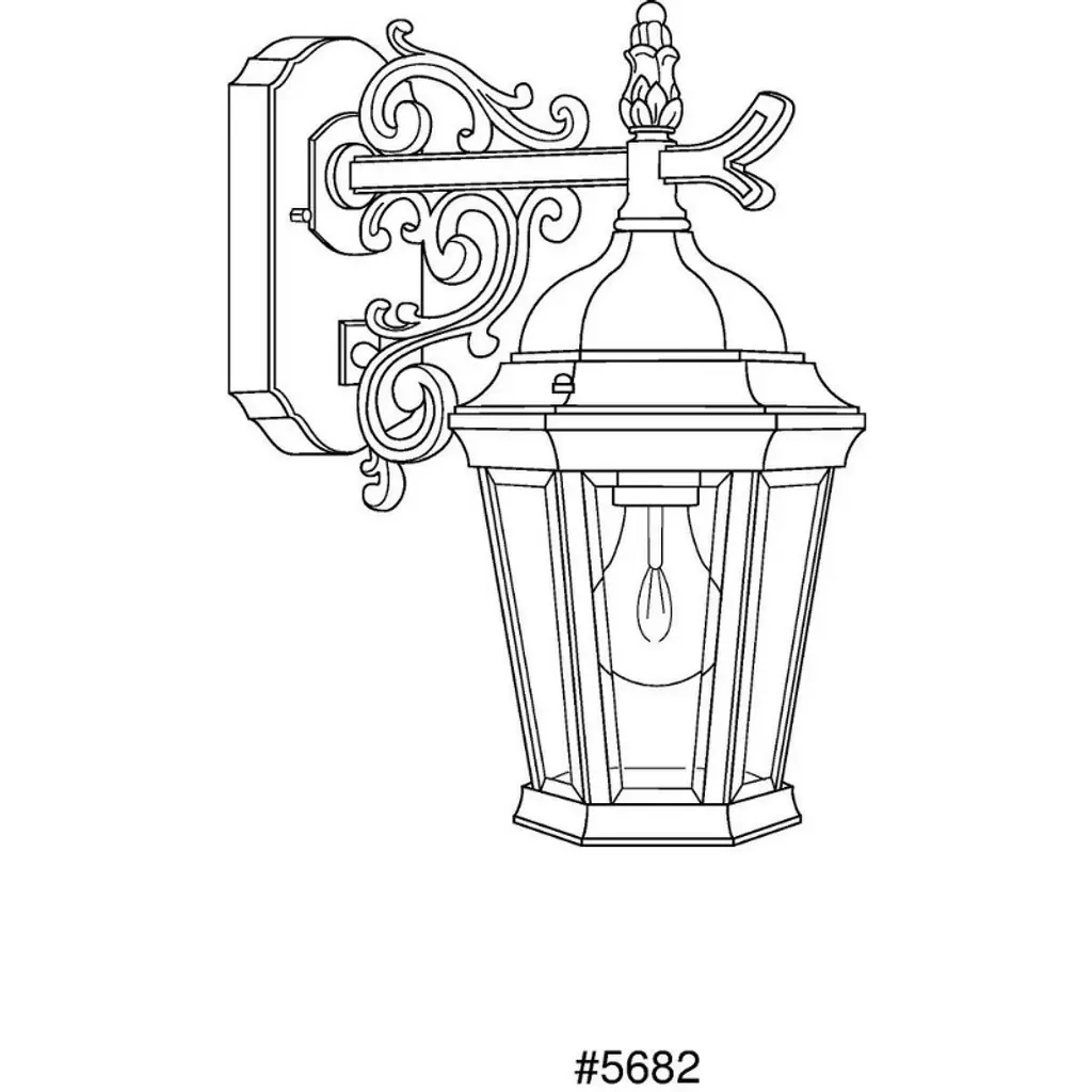 Introducing the Progress Lighting Welbourne Collection Outdoor Wall Lantern. Crafted from durable ceramic material with a textured black finish, this lantern measures 6.25" in width, 13.06" in height, and 9" in length, with a depth of 9.75". It features a 3.5" height from the outlet box, a 4.5" backplate width, and a 7" backplate length. This incandescent lantern requires one 100-watt bulb and is wet rated for outdoor use. The hexagonal framework and vine-inspired scrolls, along with clear beveled glass panels, create a timeless and elegant design. Perfect for illuminating outdoor spaces, this one-light lantern is a stylish and functional addition to any home.