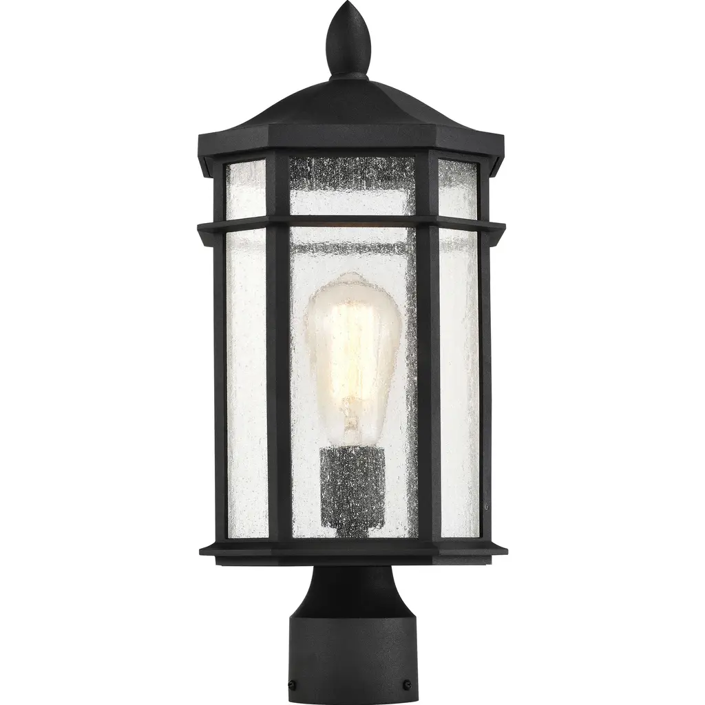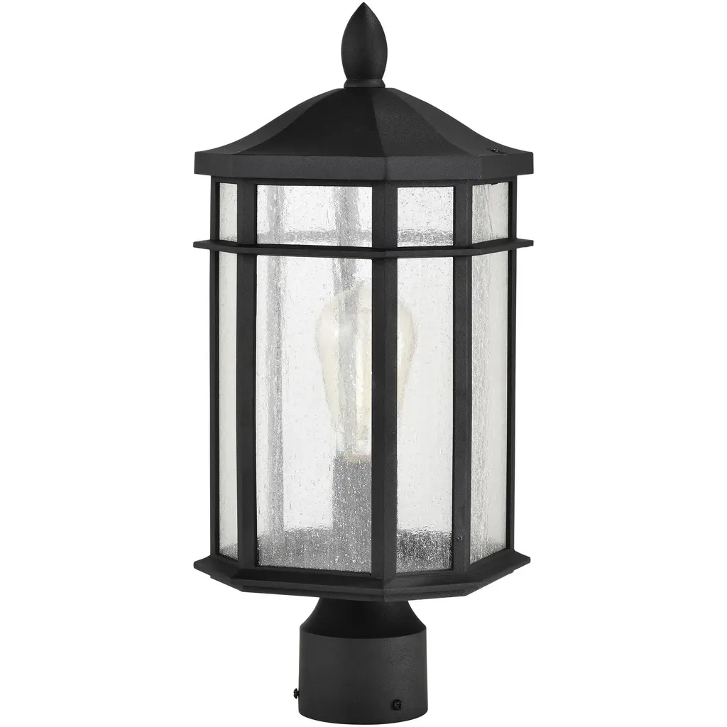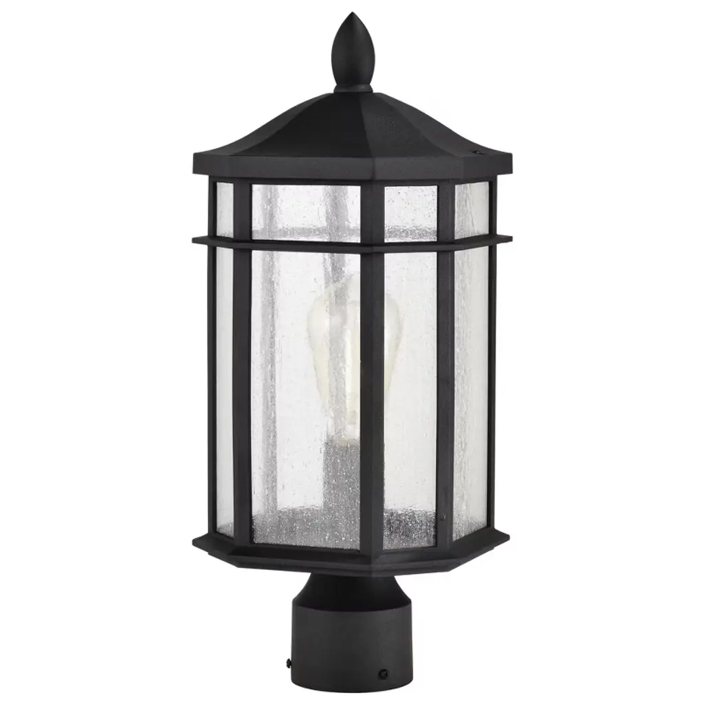 Raiden Collection Outdoor 18 Inch Post Light Pole Lantern - Matte Black Finish with Clear Seeded Glass