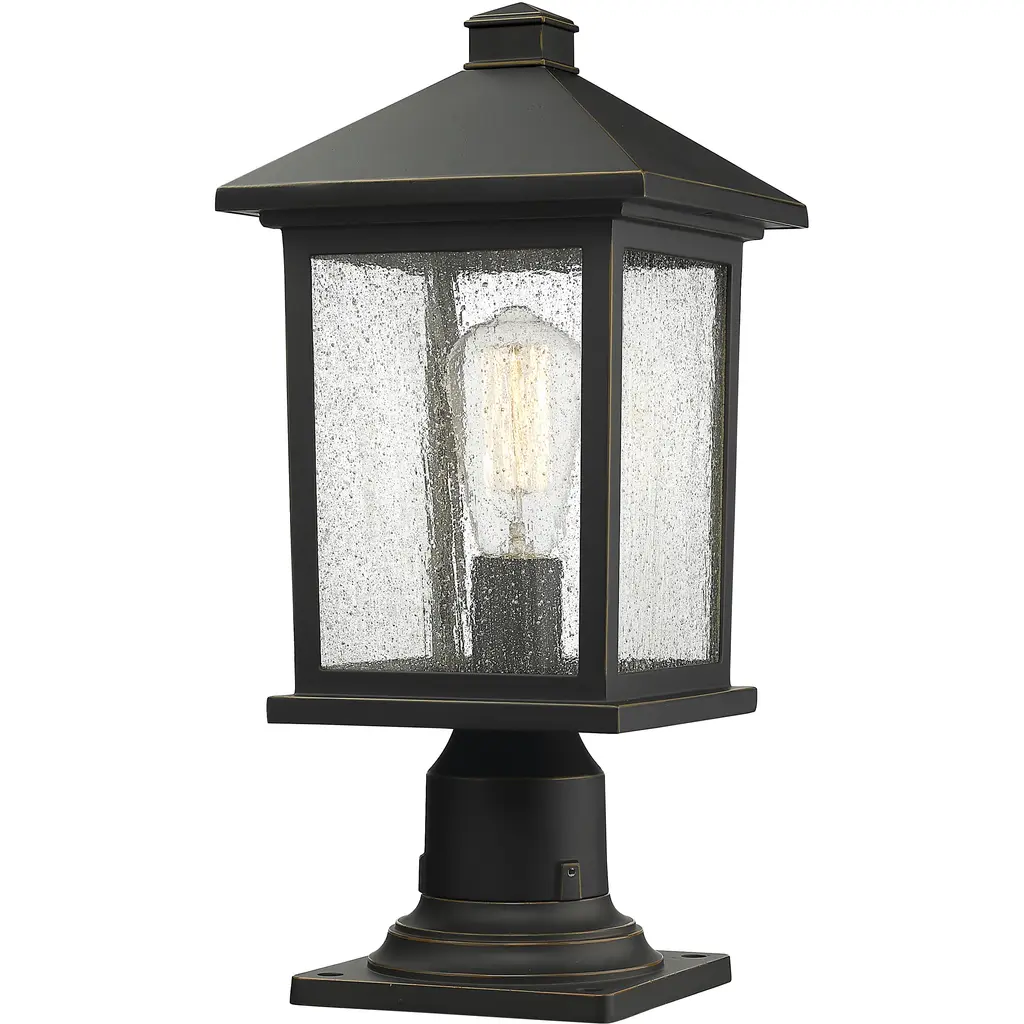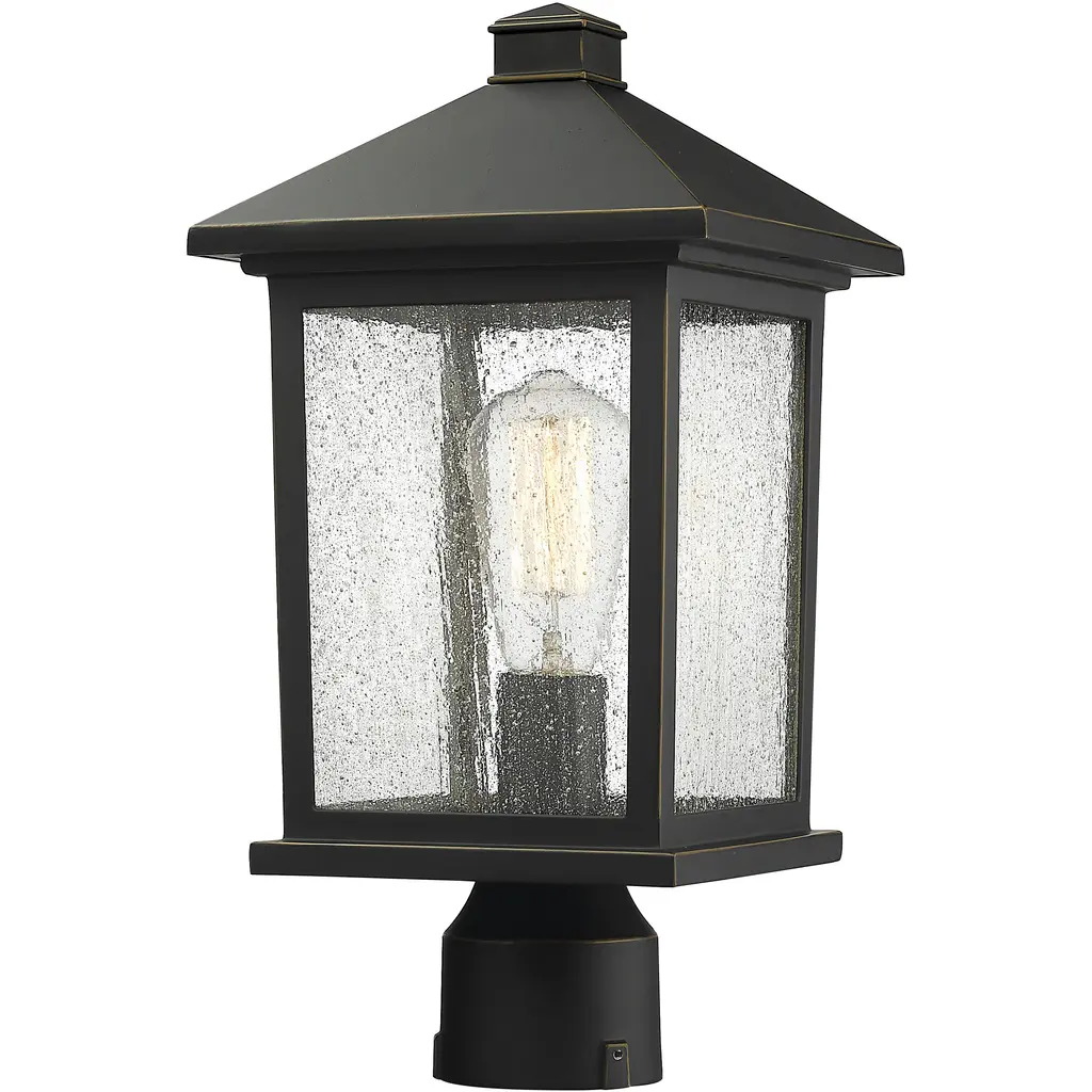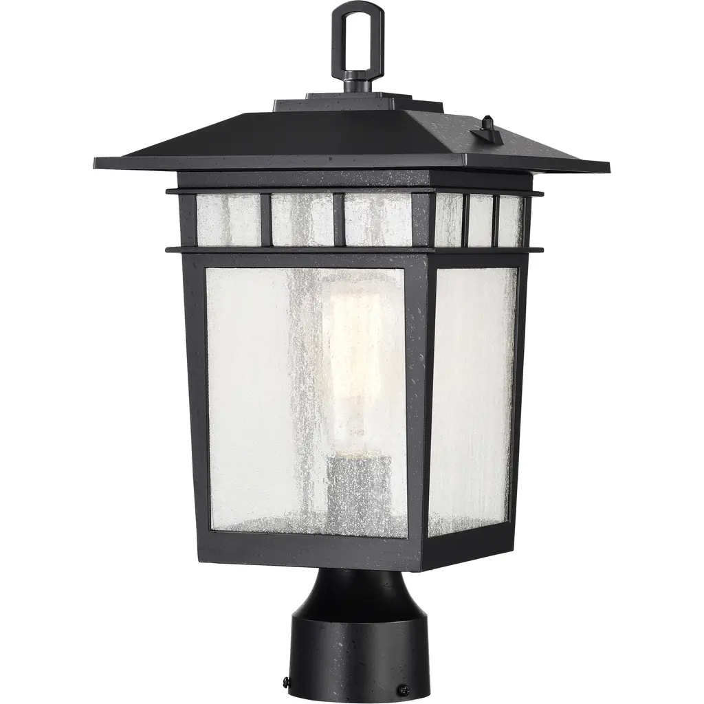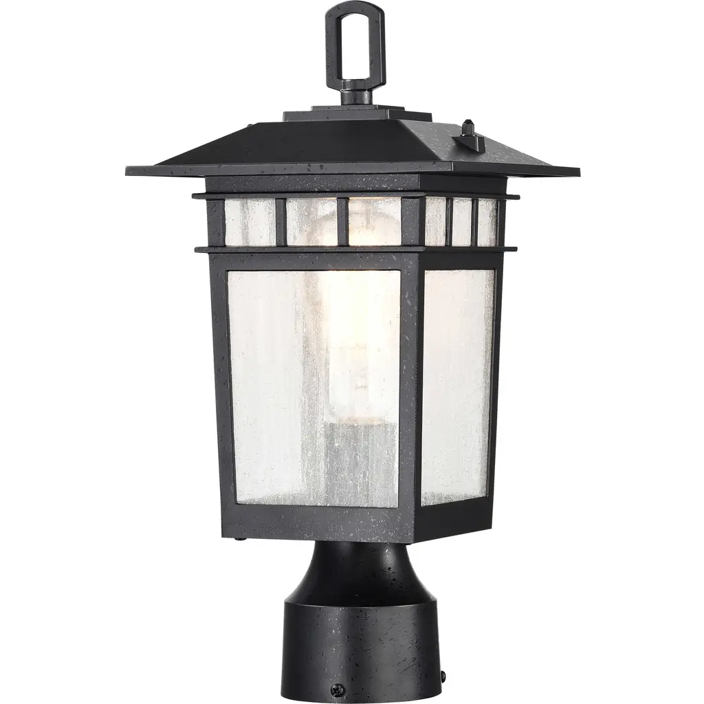 Raiden Collection Outdoor 18 Inch Post Light Pole Lantern - Matte Black Finish with Clear Seeded Glass