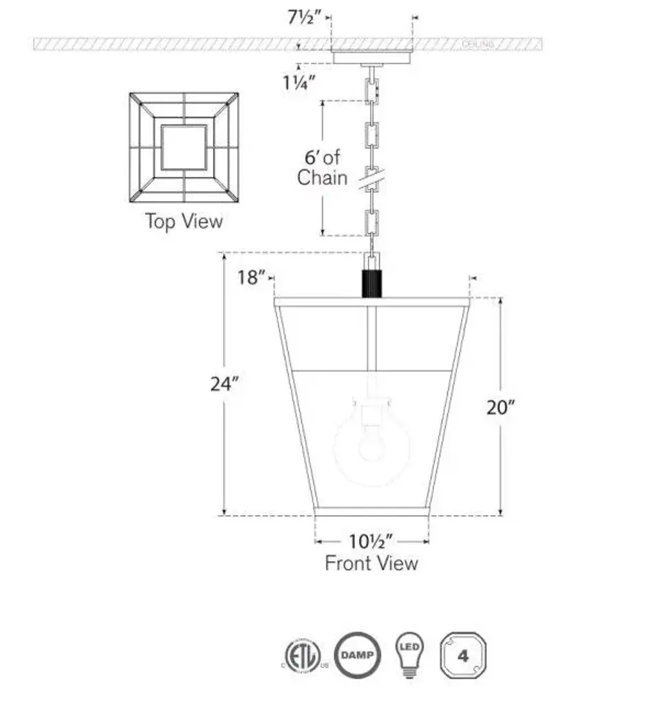 The Illume by Ray Booth reframes traditional lantern forms focusing on simplicity. Pared down to its most essential structure, the box frame hangs on a rectangular chain and is shielded by a frosted globe. Available in antique brass, polished nickel or warm iron with burnished brass, the lantern will lend a charming touch to entryways, hallways or even suspended over a table, and can be used alone or in multiples for a dramatic flair. Designer: Ray Booth Canopy: 7.5" Square Mounting: Chain Socket: E26 Keyless Wattage: 15 LED A19 Safety Rating Location: Damp Assembly Required? Yes
