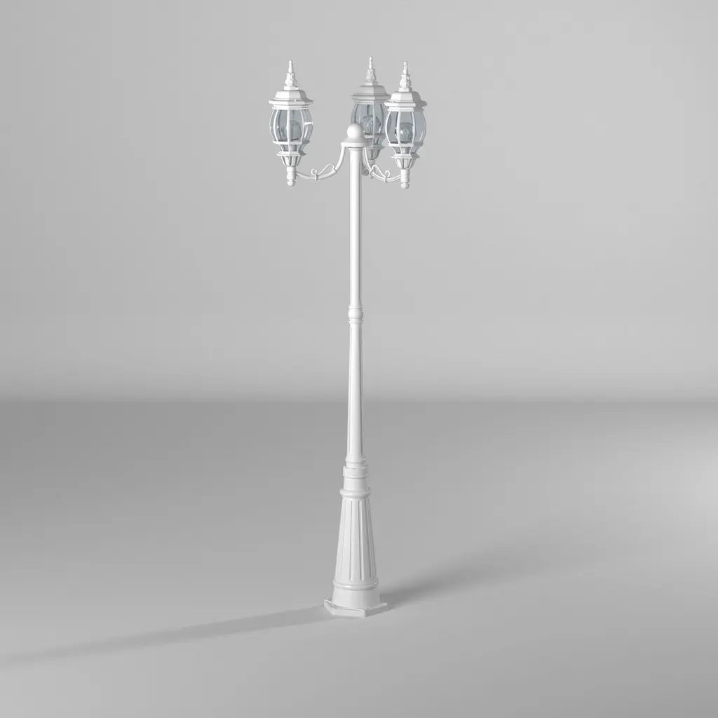 The Riviera Collection comes in White with Clear Beveled glass. This Traditional Riviera 3 Head Post Lantern will complement the decor in any room of your home. Made with Cast Aluminum construction to endure harsh outdoor environments. Eight sided lanterns with clear beveled glass offered in three sizes.