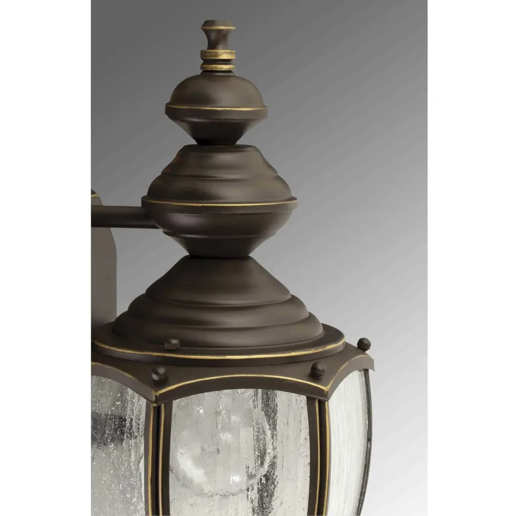 Solid one-light 7" medium wall lantern in rich weathered finish is complemented by seeded glass panels - a great choice for low maintenance and years of enjoyment. Antique Bronze finish.