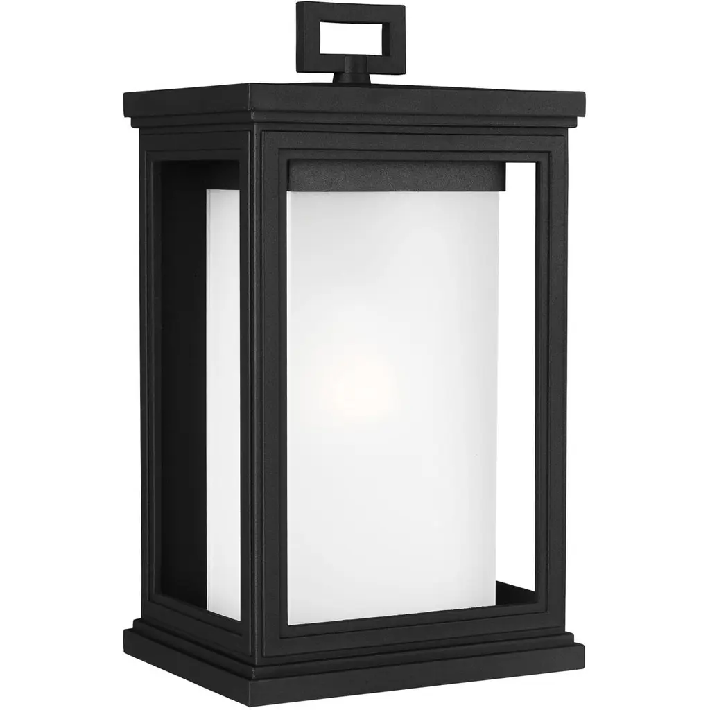 The Roscoe one light outdoor wall fixture in textured black enhances the beauty of your property, makes your home safer and more secure, and increases the number of pleasurable hours you spend outdoors. The classic, rectangular silhouette of the Roscoe lighting collection from is a modern take on a vintage coach lantern. Striated details frame the recessed White Opal Glass panel, while the rectangular handle detail on top completes the transitional design. Each lantern is composed of a proprietary StoneStrong composition (with a 5-year warranty) for supreme strength, durability, and longevity.