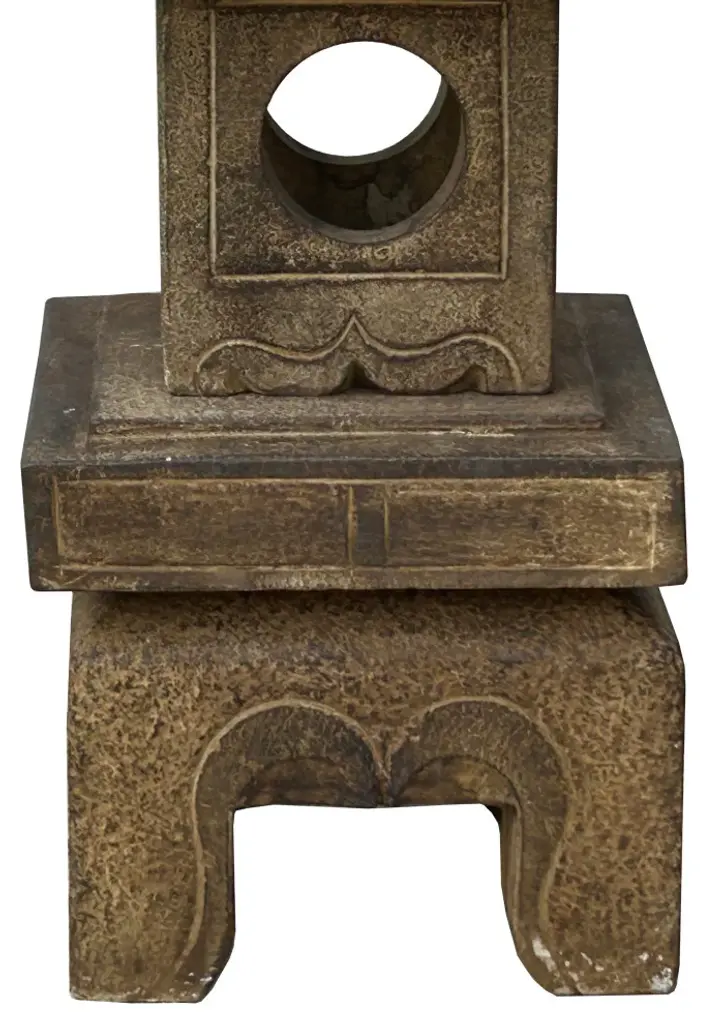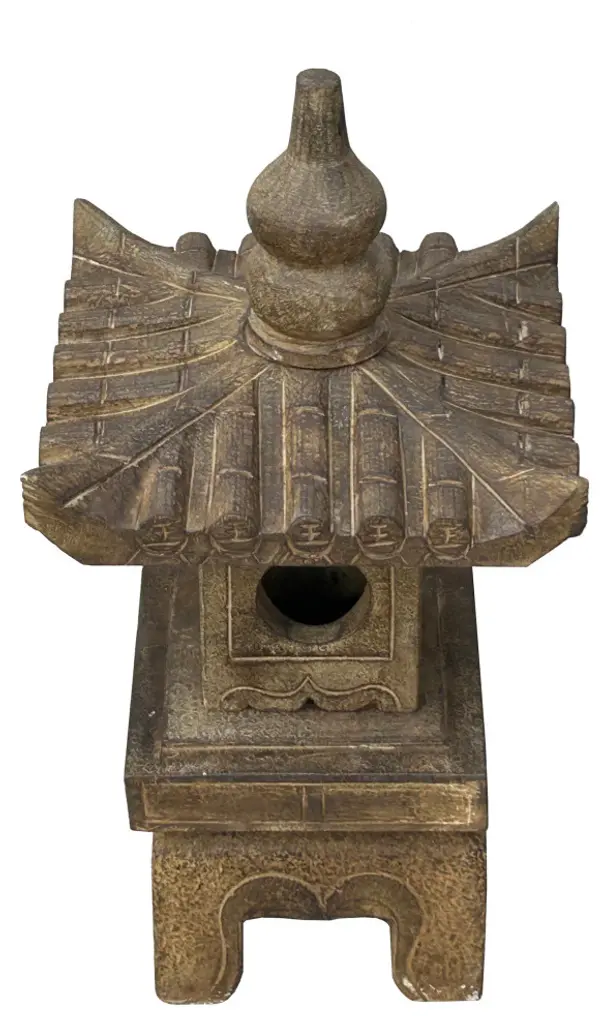 The Rustic Gray Brown Temple Tower Curve Carved Top Pagoda Shape Garden Stone Lantern exudes an air of timeless elegance and tranquility, adding a touch of traditional charm to any outdoor space. Crafted with meticulous attention to detail, this lantern captures the essence of ancient Asian architecture with its graceful curves and intricate carvings.Standing tall and proud, the lantern features a pagoda-inspired shape, reminiscent of sacred temples nestled among serene landscapes. Its rustic gray-brown hue lends a weathered appearance, creating a sense of history and authenticity.The lantern''s carved top adds a captivating focal point, drawing the eye upward to its gently sloping roofline. Each curve and line tells a story of craftsmanship and artistry, inviting contemplation and reflection.Whether placed amidst a lush garden or along a tranquil pathway, the Rustic Gray Brown Temple Tower Curve Carved Top Pagoda Shape Garden Stone Lantern promises to evoke a sense of peace and harmony, becoming a cherished centerpiece in any outdoor sanctuary.Dimension: 14" x 14"x h27" +- 1"Origin: ChinaMaterial: StoneCondition: Good, Natural stone, natural stone marks, may have chip marks on the legsFor all USA domestic continental customers (from 48 states), there is a flat shipping fee of $200, which includes insurance and handling charges. (Additional shipping charges apply to buyers from Hawaii, Alaska, US Islands, Florida Keywest, and Canada). If you are in the San Francisco Bay Area, we warmly encourage you to take advantage of our convenient in-store pick-up option at no extra cost. Please keep all original packing material and box if damage happens.
