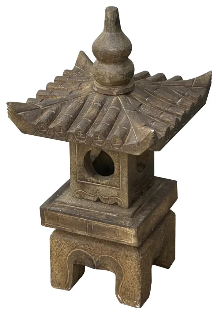 Rustic Gray Brown Temple Tower Top Pagoda Shape Garden Stone Lantern Hws3650