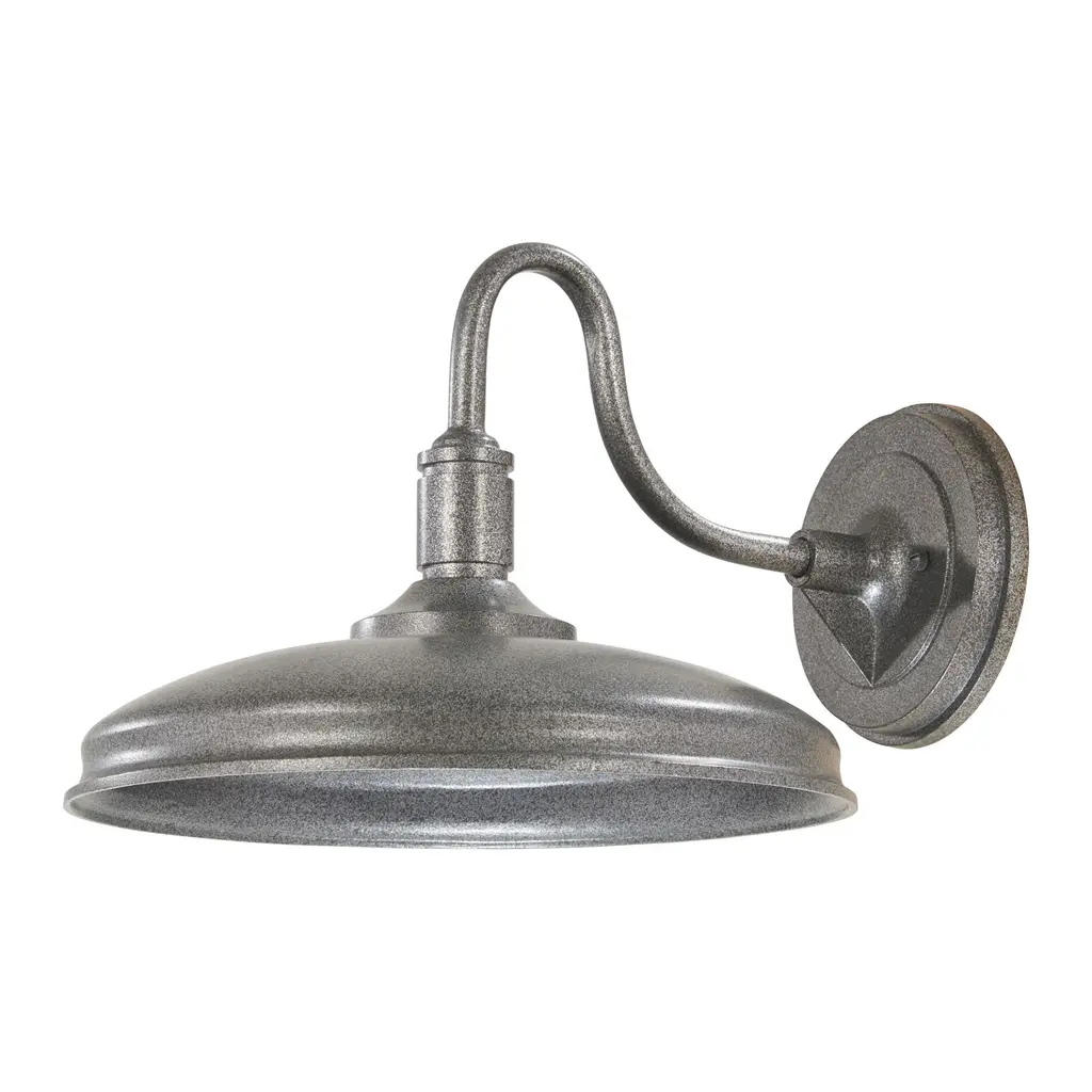 The Barn Light one light outdoor wall fixture in weathered pewter enhances the beauty of your property, makes your home safer and more secure, and increases the number of pleasurable hours you spend outdoors. The classic Barn Lights are hand crafted in aluminum and coated in a Galvanized or Blacksmith finish. Ideal for large or heavily trafficked outdoor areas that need plenty of downward directed light. The oversized Barn Lights make great accents to any commercial lighting plan or residential garage entry, shed, or patio. To customize your look, a 6" extender is included with every fixture. Also available as Dark Sky with four size options to choose from.