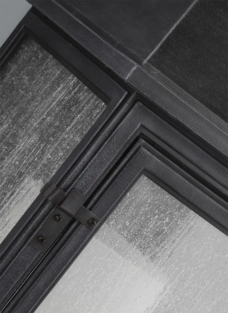 Inspired by traditional Parisian style lanterns, the Shepherd outdoor lighting collection by features a decorative shepherd's crook, a latched and hinged front door panel, an inner Case White glass shade, Clear Seeded outer glass to create the visual appearance of vintage gas lanterns. Made of a proprietary composition for outstanding durability even in the harshest elements, the collection has a 5-year warranty. Offered in either Dark Weathered Zinc or Heritage Copper finishes. Designer: Sean Lavin Extension: 7 1/4 Backplate: DP:3/4'' W:4 1/2'' H:5 1/2'' OB UP:9 5/8'' Rectangular Shade/Glass: opal etched glass and clear seeded glass Lamping: 1 A19 Medium 75 watt light bulb Voltage: 120 Bulb Included: No Safety Rating Location: wet