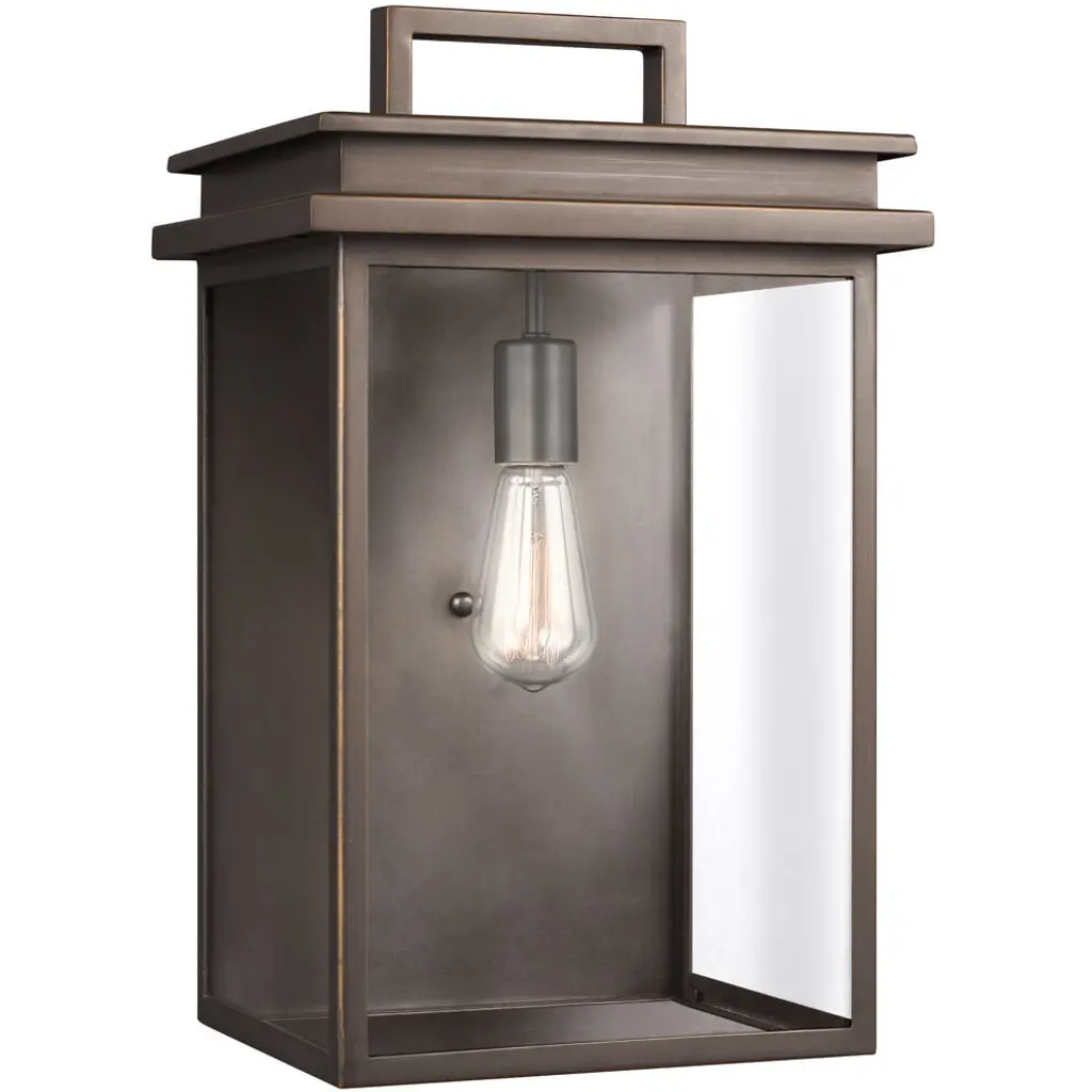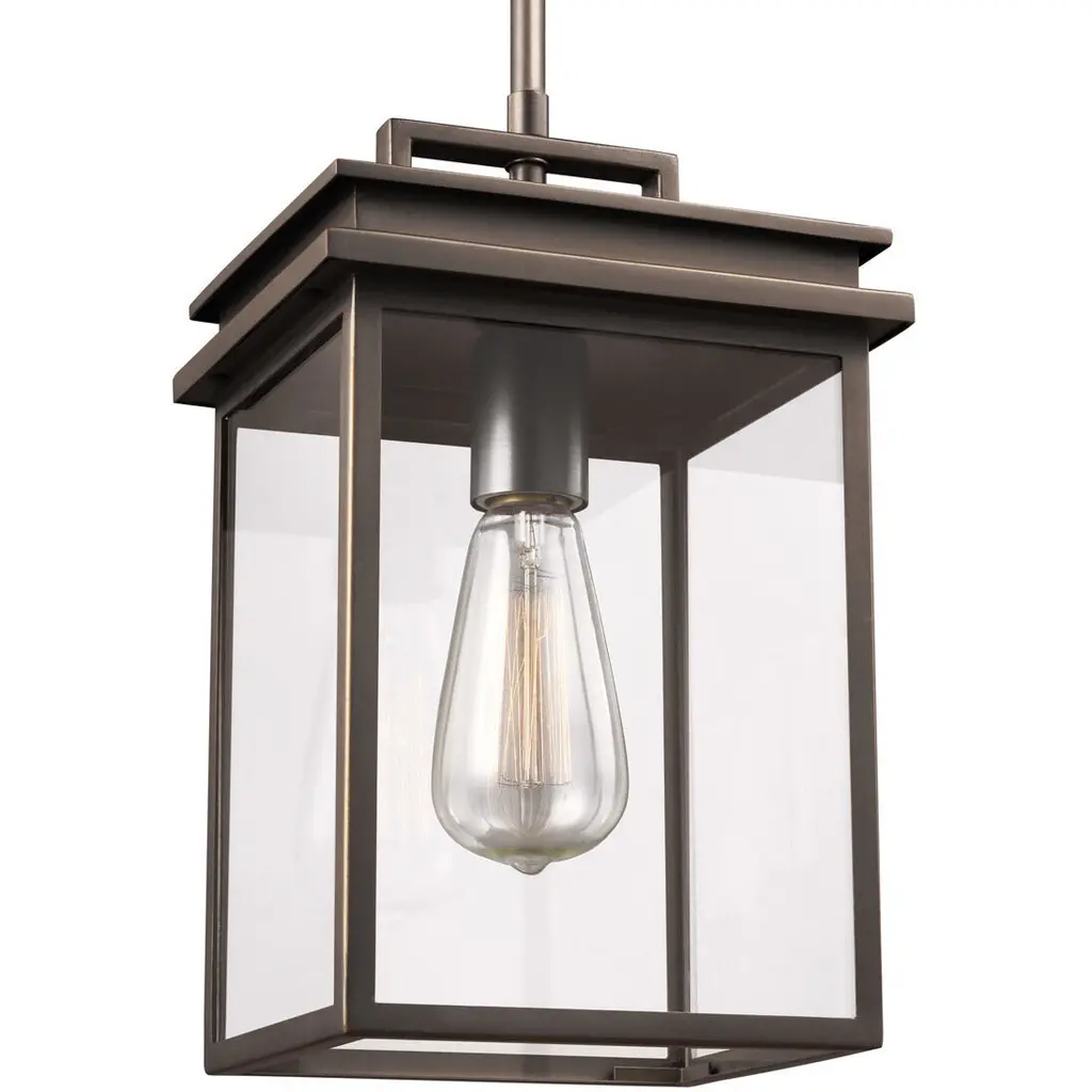 The Prairie style is known for simple, linear design elements often influenced by Asian characteristics, and the Glenview outdoor collection by delivers that look with its streamlined frame and subtly detailed, flat roofline. A new gilded Antique Bronze finish brings a refreshing and stylish tone to dress up outdoor spaces. The open bottom ensure the low-maintenance fixture is easy to clean. Fixtures offered in the Glenview Collection include small one-light wall lantern (10 inches high), medium one-light wall lantern (12 inches high), large one-light wall lantern (14 inches high), and extra-large one-light wall lantern (18 inches high), an one-light outdoor post lantern and an one-light outdoor pendant. Cast aluminum construction ensures durability. Wet Rated.