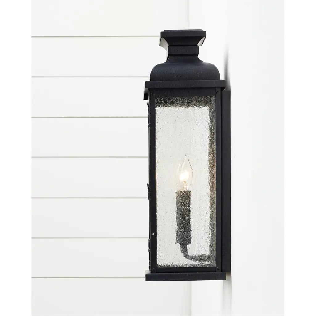 Inspired by distinctive outdoor lanterns commonly found throughout the streets of London, the crowning detail of the traditional Pediment outdoor lighting collection by is its classically, curving roof line. The hinged and latched front panel adds a historical reference and also makes relamping easy. The Clear Seeded glass subtly obscures the lamping and helps create the visual appearance of vintage gas lanterns. Offered in a Dark Weathered Zinc finish, all fixtured rated for wet locations.