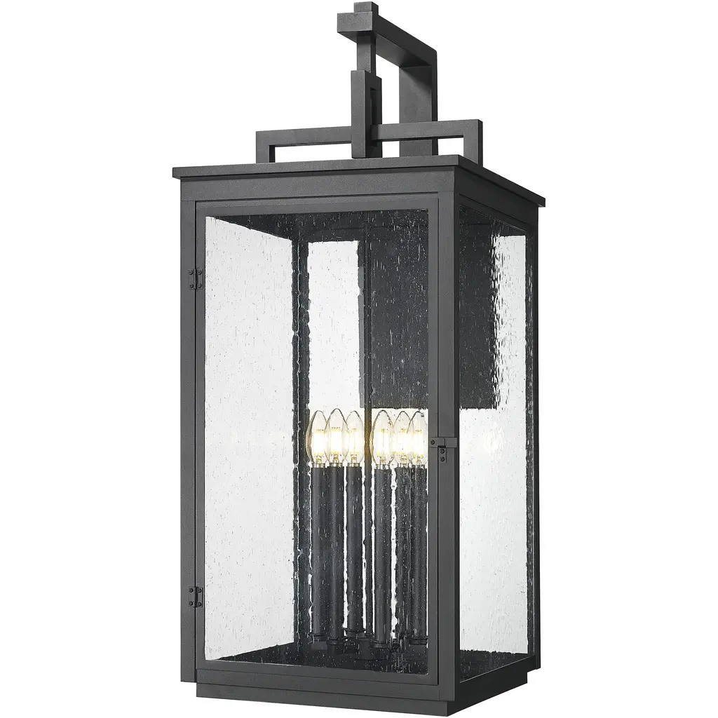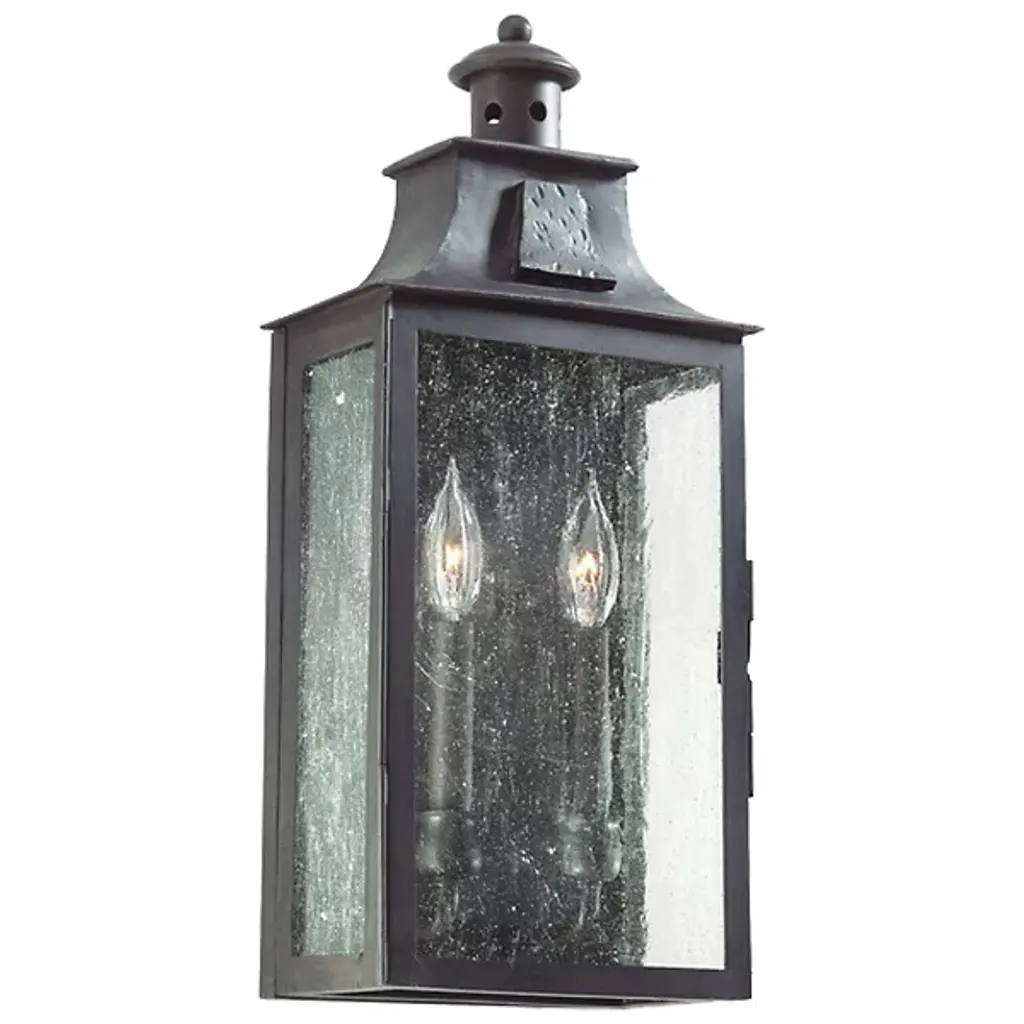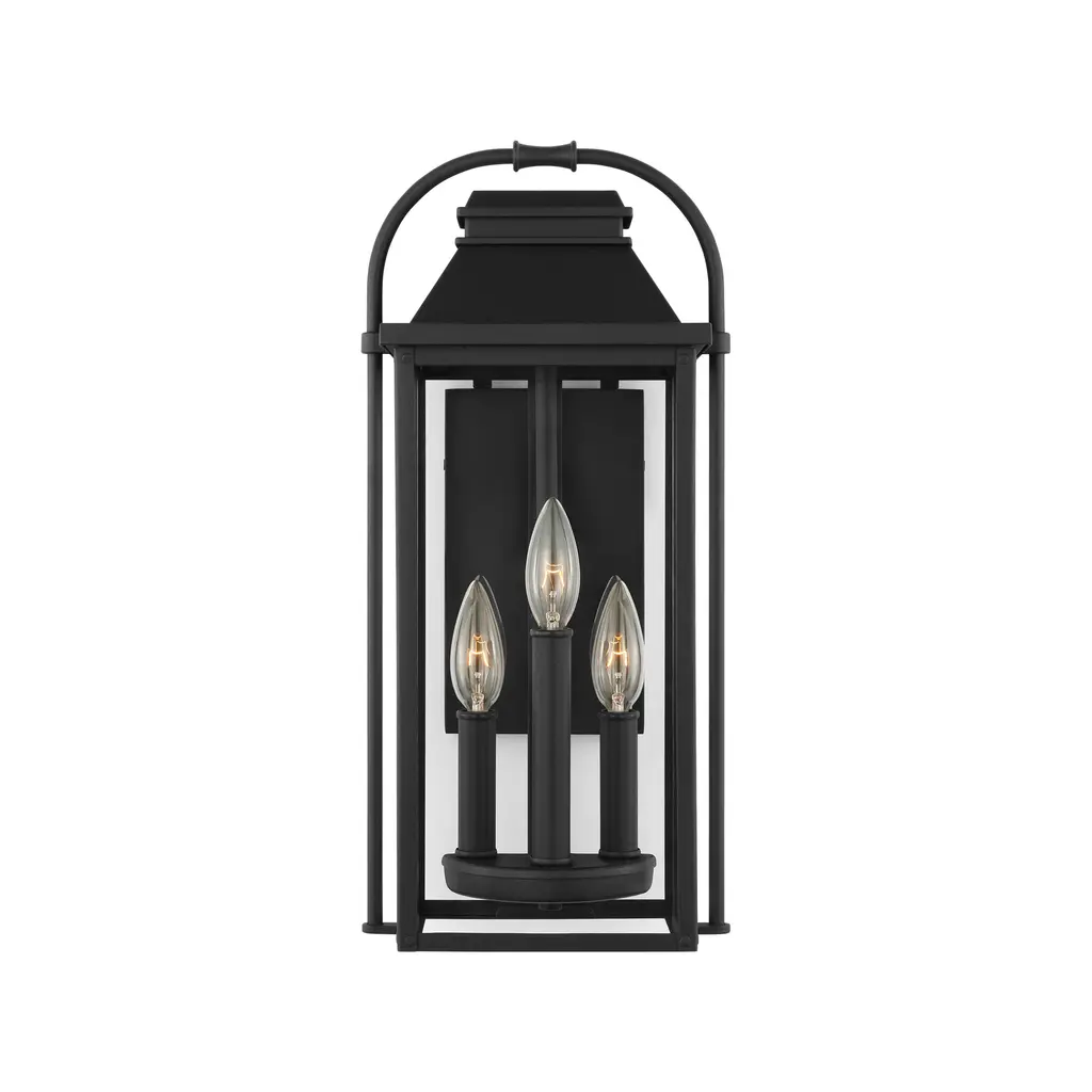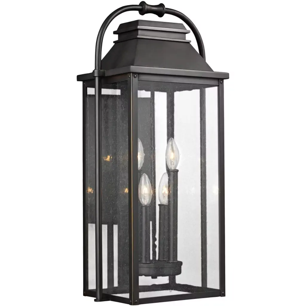 With its classic silhouette and sophisticated accents, the Sean Lavin Wellsworth Lantern from Visual Comfort & Co will add a touch of elegance to your entryway, porch, balcony or backyard. Crafted from cast aluminum and featuring a handle-like accent and clear seeded glass panels, its three candle structures produce a warm, diffused light that will illuminate any outdoor space. Make a statement and bring timeless style to your home. Highlights