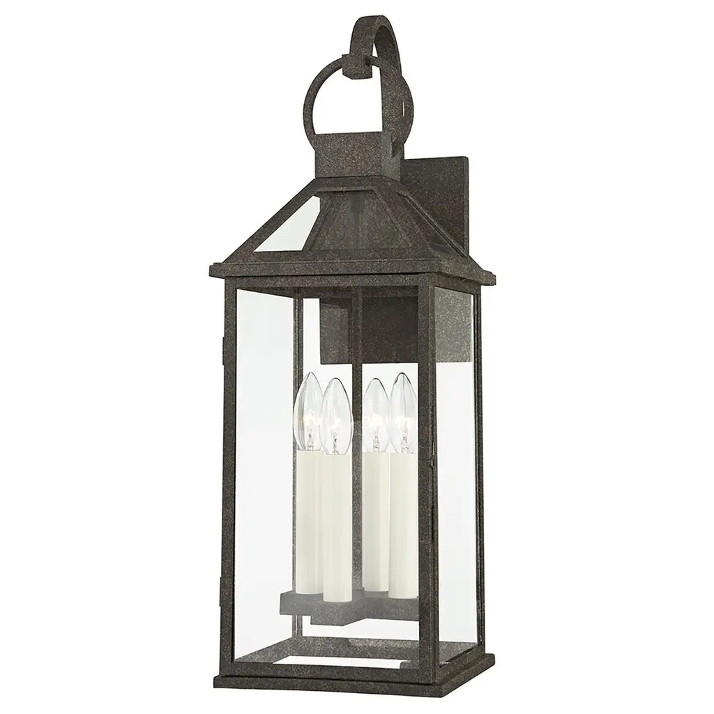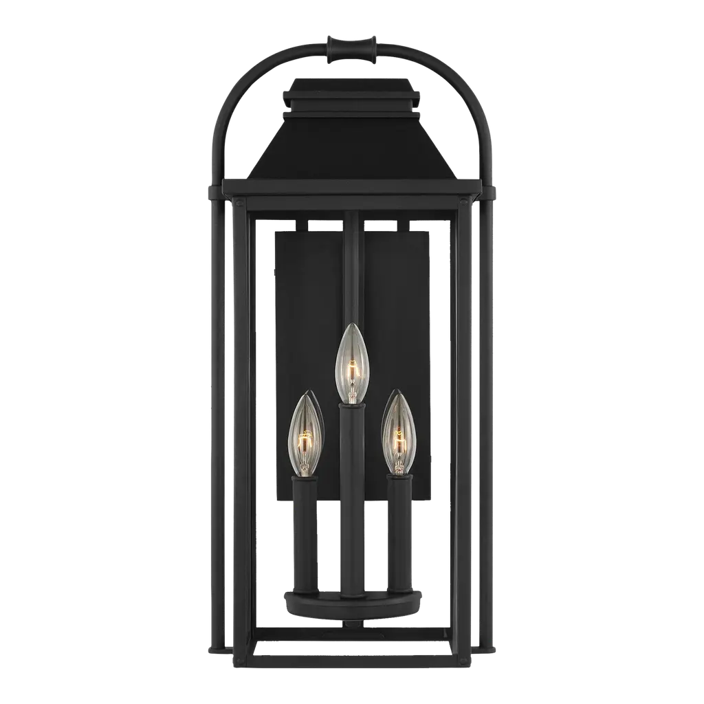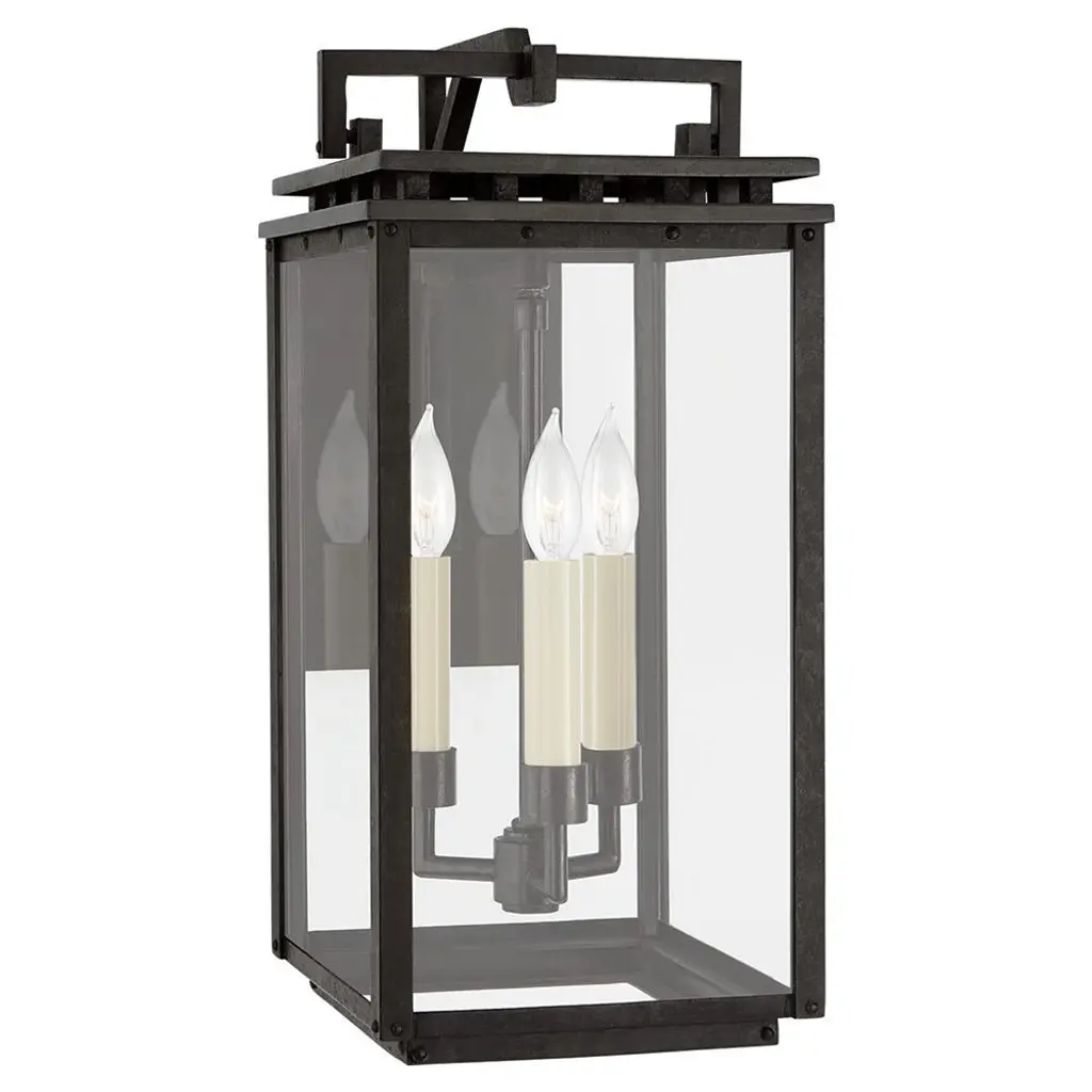 With its classic silhouette and sophisticated accents, the Sean Lavin Wellsworth Lantern from Visual Comfort & Co will add a touch of elegance to your entryway, porch, balcony or backyard. Crafted from cast aluminum and featuring a handle-like accent and clear seeded glass panels, its three candle structures produce a warm, diffused light that will illuminate any outdoor space. Make a statement and bring timeless style to your home. Highlights
