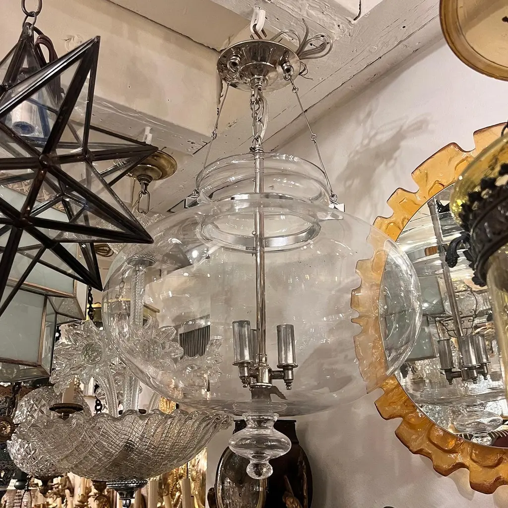 Set Of 3 Midcentury Clear Glass Lantern. Sold Individually