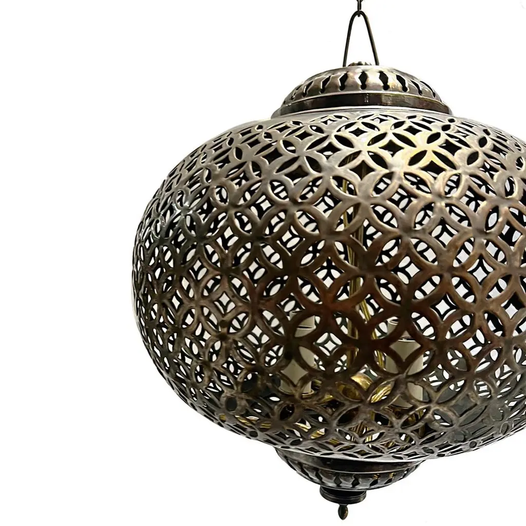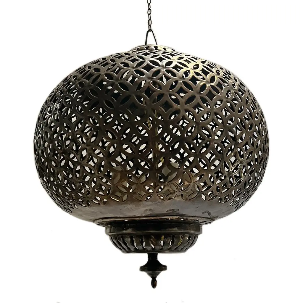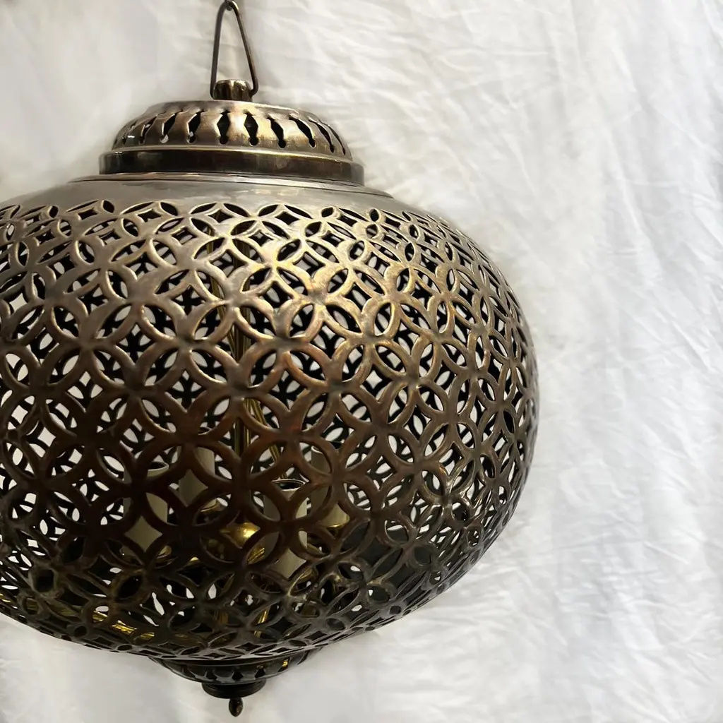 A set of Turkish circa 1960's lanterns with 4 interior candelabra lights each. Original patina. Sold Individually.Measurements:Min. Drop:16"Diameter: 16"