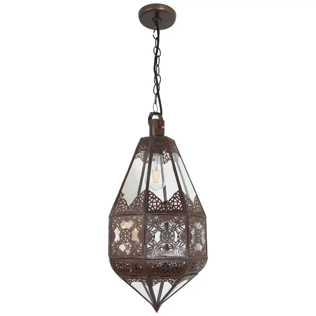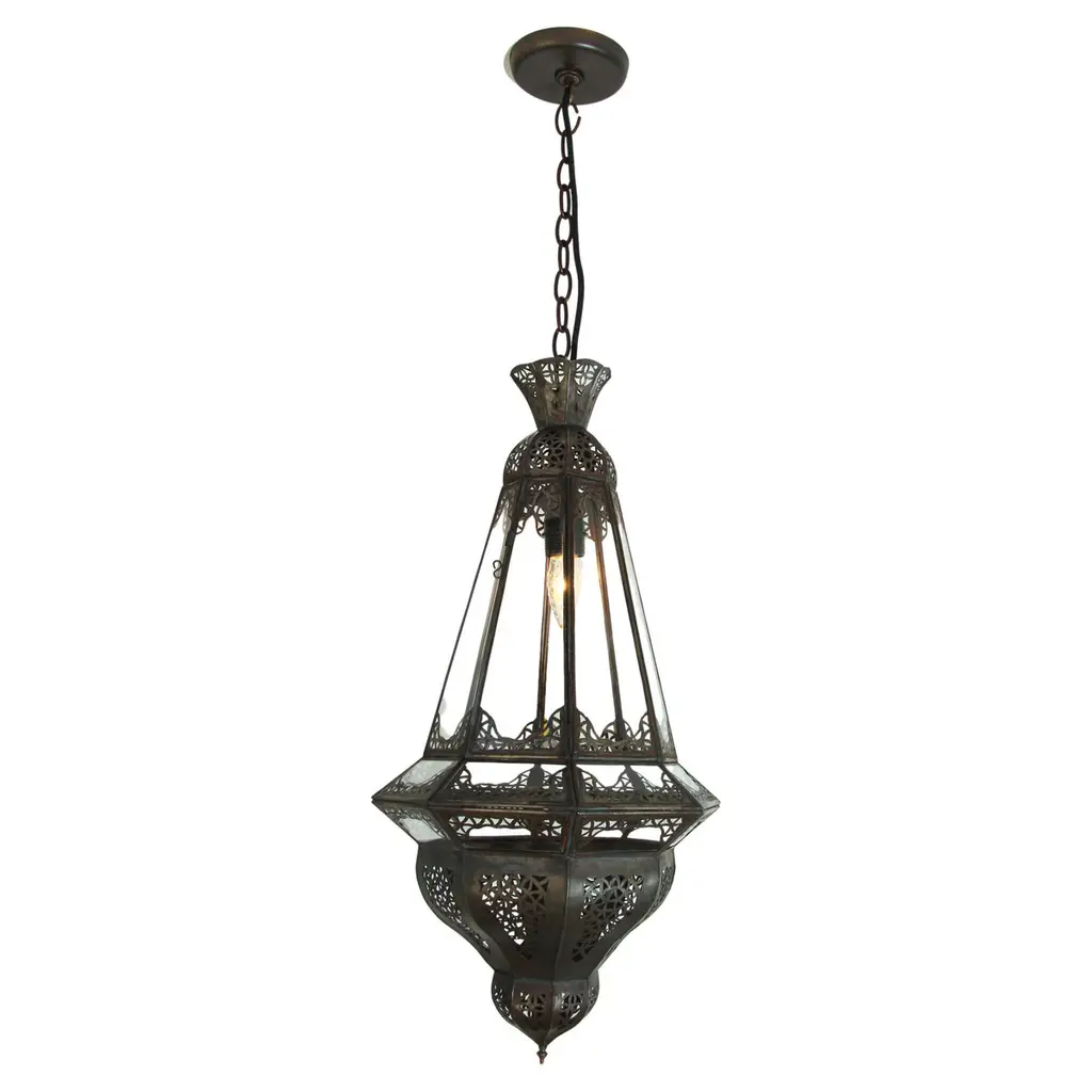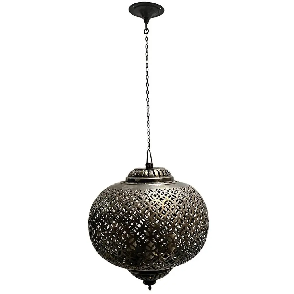 A set of Turkish circa 1960's lanterns with 4 interior candelabra lights each. Original patina. Sold Individually.Measurements:Min. Drop:16"Diameter: 16"
