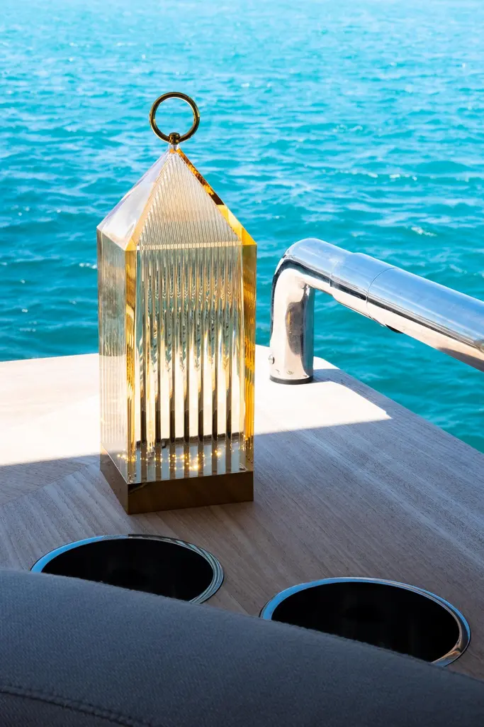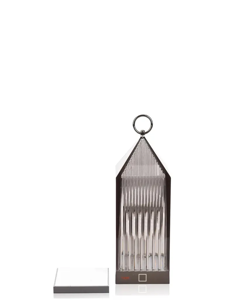 Lantern by Fabio Novembre is an original portable LED, transparent, “chargeable”, injection moulded lamp that charges by placing it onto a charging base. The light is projected by a graphic effect of the design. Outdoor use. Voltage: 3.7. Not adaptable for other countries. Integrated LED. Kelvins: 2700k. Bulb type: 1.2W LED.
