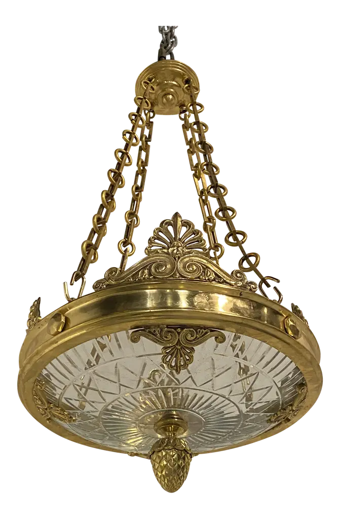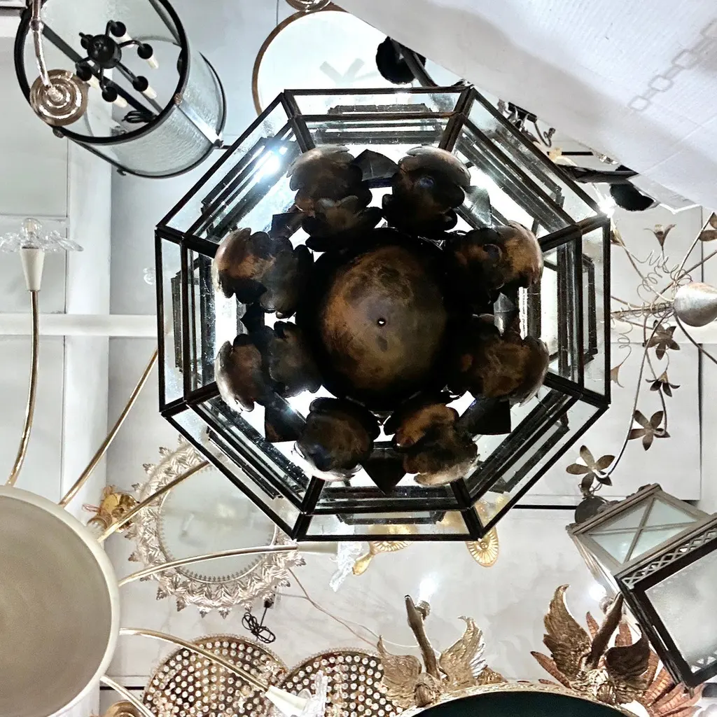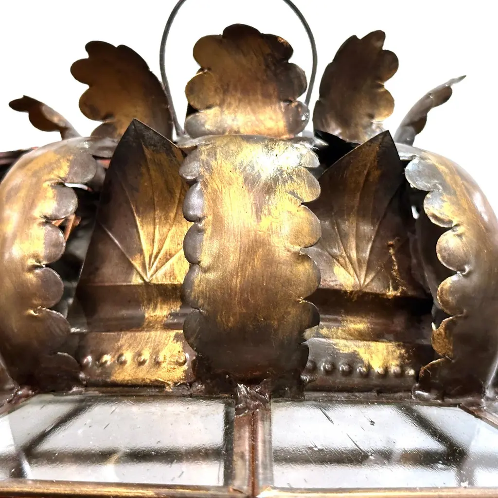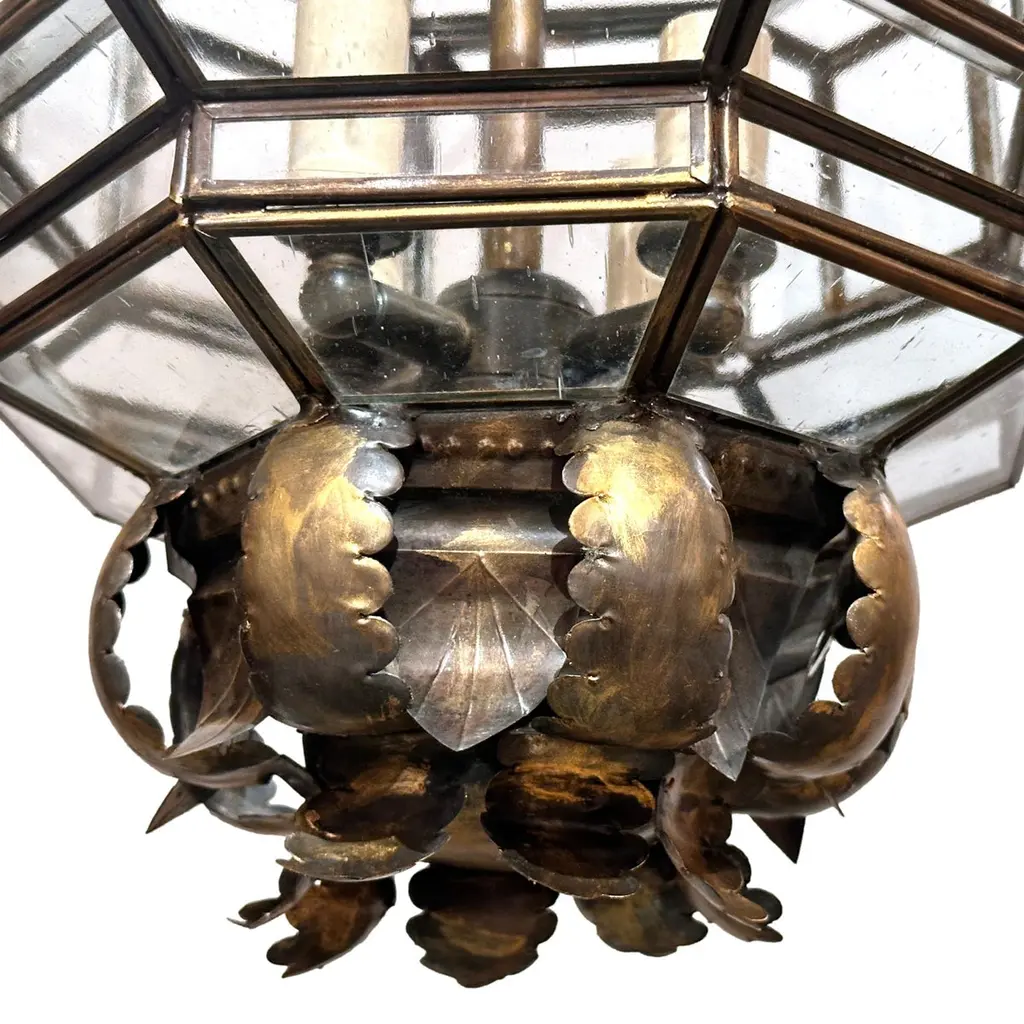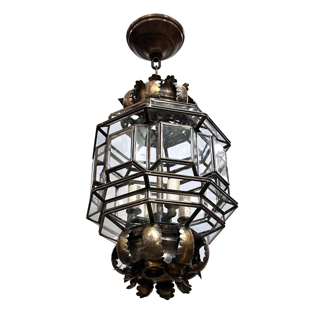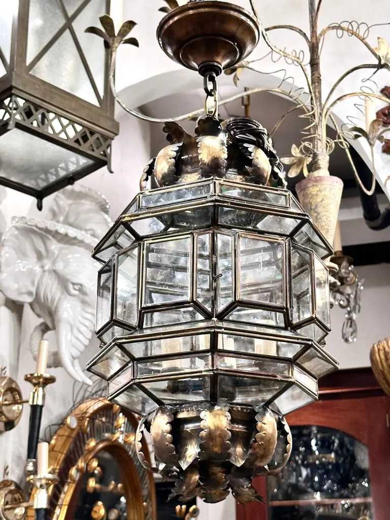 Set of 4 Italian circa 1960's lanterns with patinated gilt finish. Sold individually.Measurements:Height of body: 18"Current drop: 23"Diameter: 12"