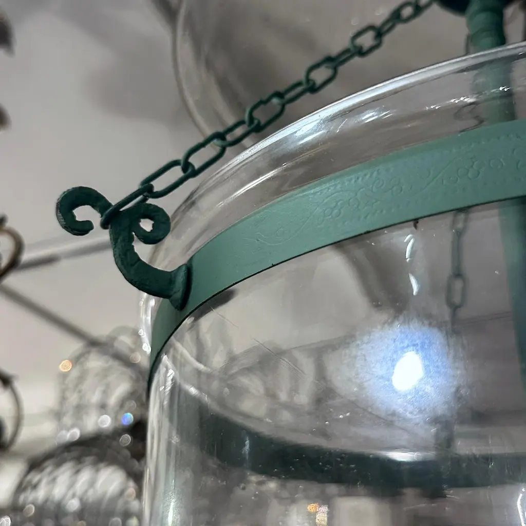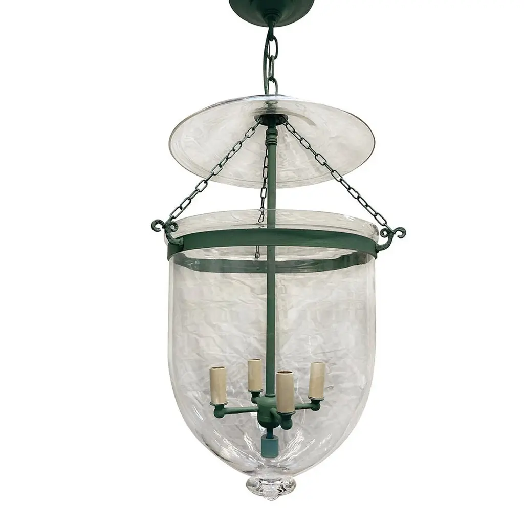 A set of seven Italian circa 1950's painted lanterns with original patina. Sold individually.Measurements:Drop: 30”Diameter: 14".