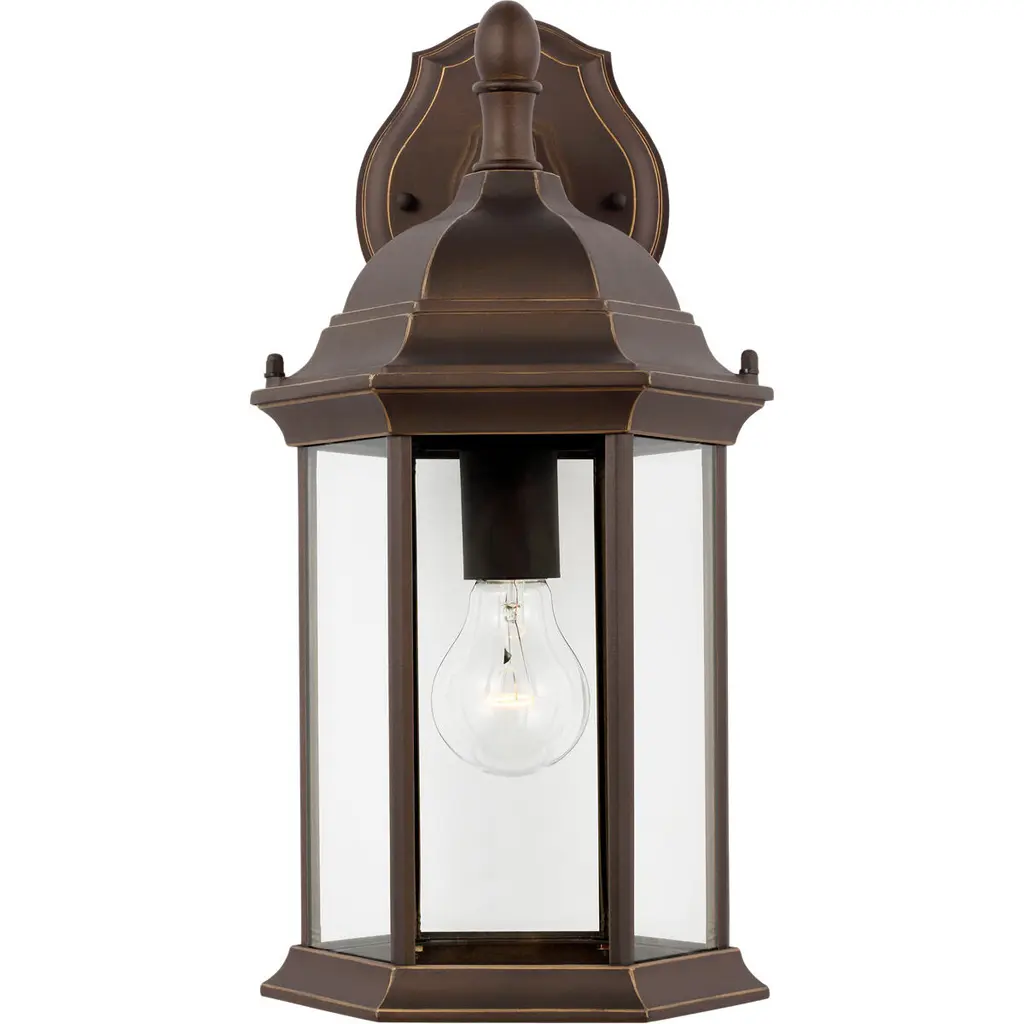 The Sevier one light outdoor wall fixture in antique bronze enhances the beauty of your property, makes your home safer and more secure, and increases the number of pleasurable hours you spend outdoors. The Sevier outdoor collection by brings timeless design to new heights with its traditional design details found in classic outdoor fixtures as well as an open bottom for easy maintenance. Made of durable cast aluminum, a multi-level crown, top finial and stepped-edge back plate complete the traditional look. Offered in Antique Bronze or Black finish, both with Clear glass, the collection includes a one-light outdoor pendant, one-light post lantern, a large one-light up light outdoor wall lantern, a small one-light up light outdoor wall lantern, a small one-light downlight outdoor wall lantern, and a large one-light downlight outdoor wall lantern.
