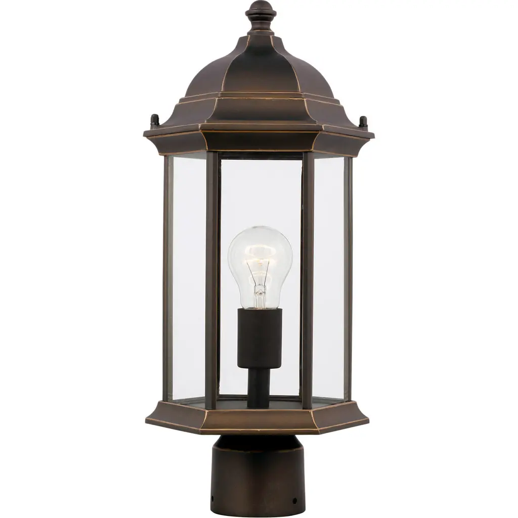 The Sevier one light outdoor post top in antique bronze enhances the beauty of your property, makes your home safer and more secure, and increases the number of pleasurable hours you spend outdoors. The Sevier outdoor collection by brings timeless design to new heights with its traditional design details found in classic outdoor fixtures as well as an open bottom for easy maintenance. Made of durable cast aluminum, a multi-level crown, top finial and stepped-edge back plate complete the traditional look. Offered in Antique Bronze or Black finish, both with Clear glass, the collection includes a one-light outdoor pendant, one-light post lantern, a large one-light up light outdoor wall lantern, a small one-light up light outdoor wall lantern, a small one-light downlight outdoor wall lantern, and a large one-light downlight outdoor wall lantern.