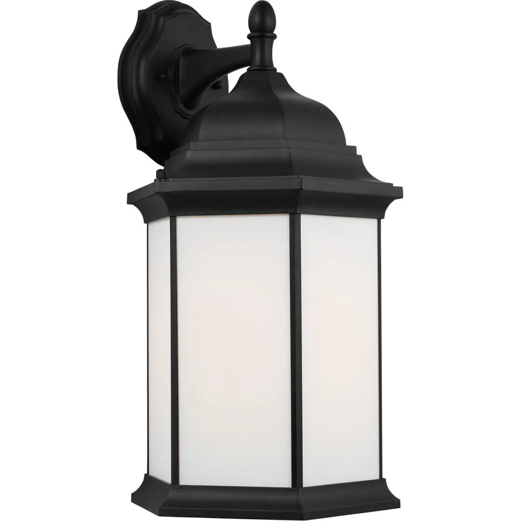 The Sevier one light outdoor wall fixture in black is an ENERGY STAR½ qualified lighting fixture that uses LED bulbs to save you both time and money. The Sevier outdoor collection by brings timeless design to new heights with its traditional design details found in classic outdoor fixtures as well as an open bottom for easy maintenance. Made of durable cast aluminum, a multi-level crown, top finial and stepped-edge back plate complete the traditional look. Offered in Antique Bronze or Black finish, both with Clear glass, the collection includes a one-light outdoor pendant, one-light post lantern, a large one-light up light outdoor wall lantern, a small one-light up light outdoor wall lantern, a small one-light downlight outdoor wall lantern, and a large one-light downlight outdoor wall lantern.