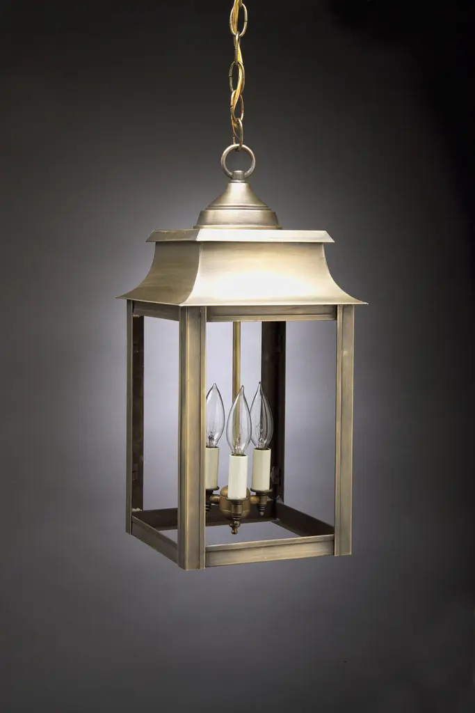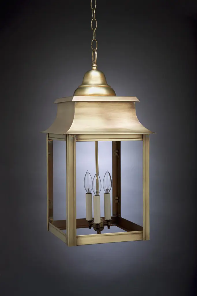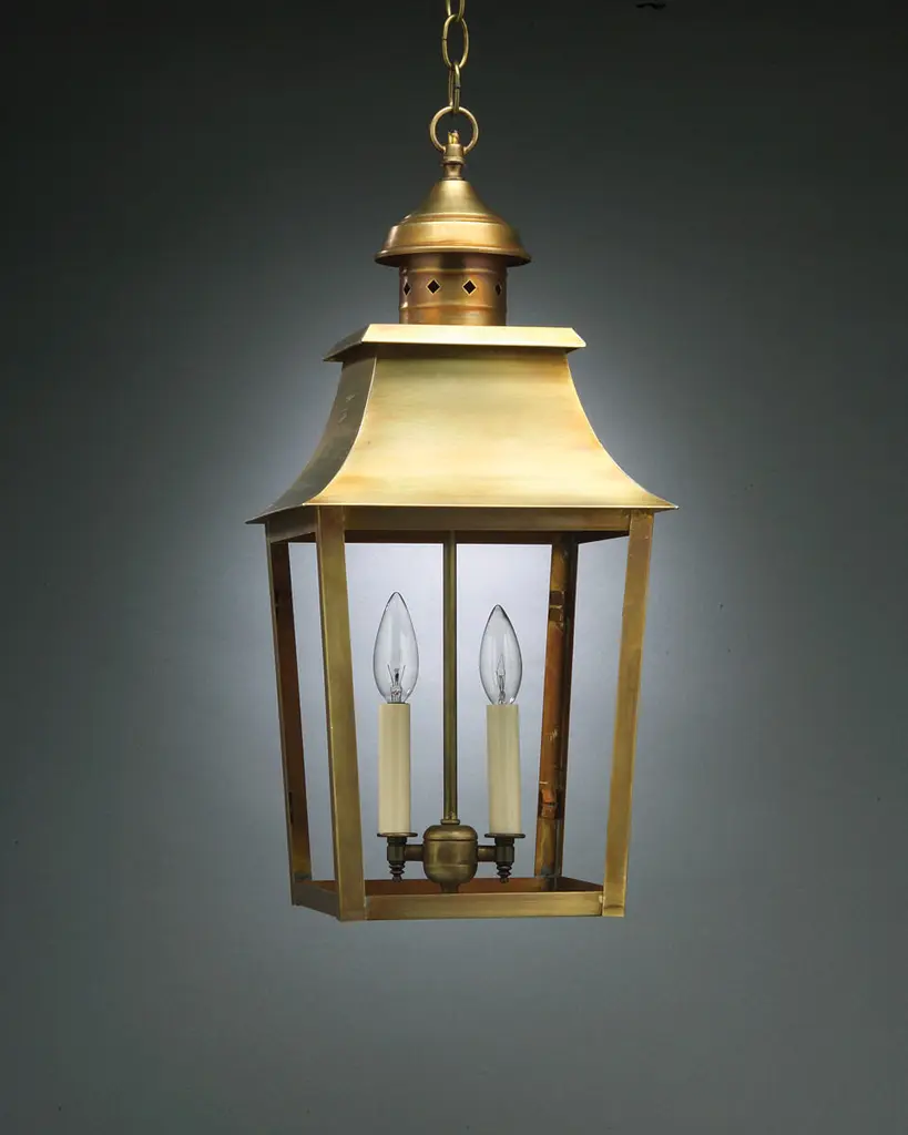 Pagoda Hanging Verdi Gris 2 Candelabra Sockets Clear Glass