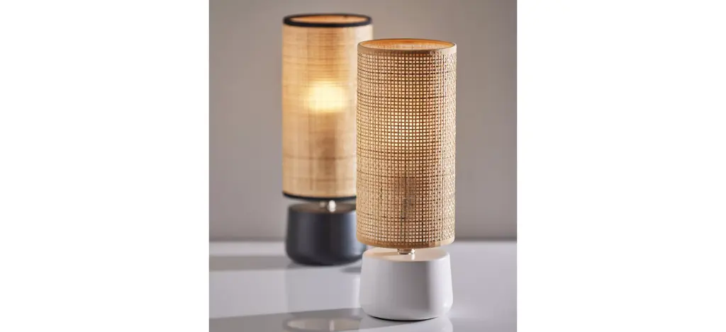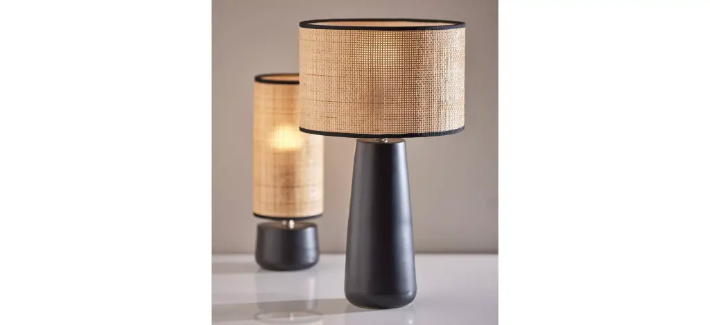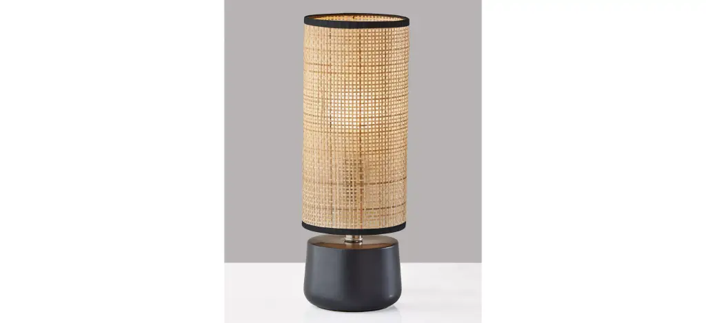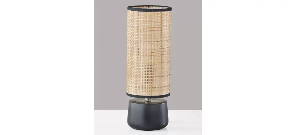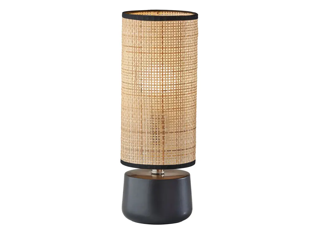 With soft curves and a warm, coastal design, the Sheffield table lantern is the perfect addition to nightstands, desks, or accent tables. The 16" tall lantern features a short, round base crafted of black ceramic leading to a tall natural rattan drum shade. The woven rattan shade softly disperses light from a 40W bulb and is trimmed in black fabric along the top and bottom, complementing the black base. Easily operated by a rocker switch, the lantern is powered by a 5' clear cord. For a neutral color scheme, the Sheffield table lantern is also available with a white ceramic base, while the turquoise ceramic base option adds a vibrant pop of color. Complete your d_cor with the coordinating Sheffield table lamp, featuring a tall ceramic base and short rattan drum shade.