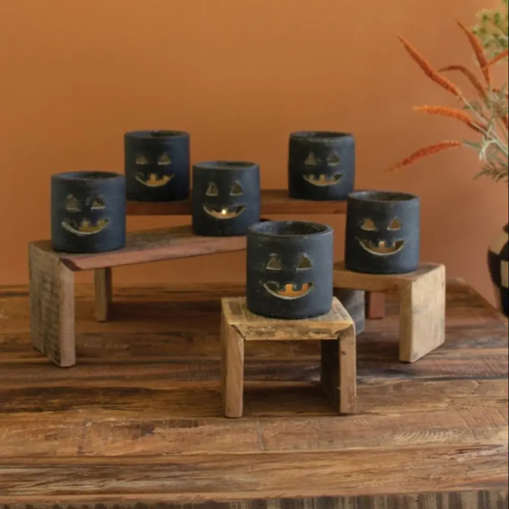 Get ready to kick off the spooky season with this set of 6 Black Clay Jack-O-Lanterns! These short luminaries are perfect for adding some Halloween charm to your home. Perfect for indoor or outdoor use.
