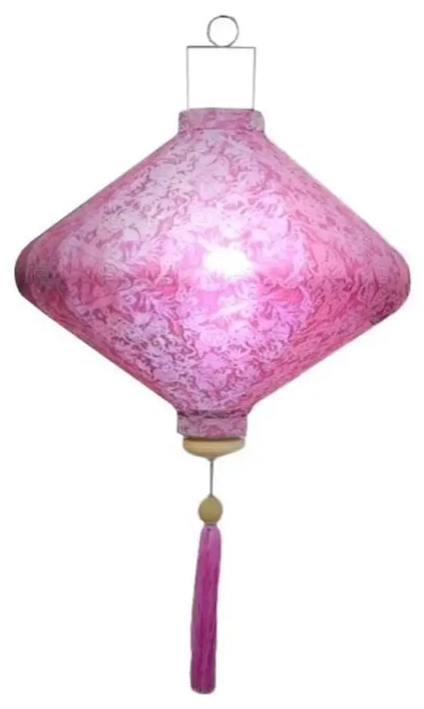 Silk Lantern Vietnamese Diamond Lamp, Pink, 27", 13' Lighting Kit