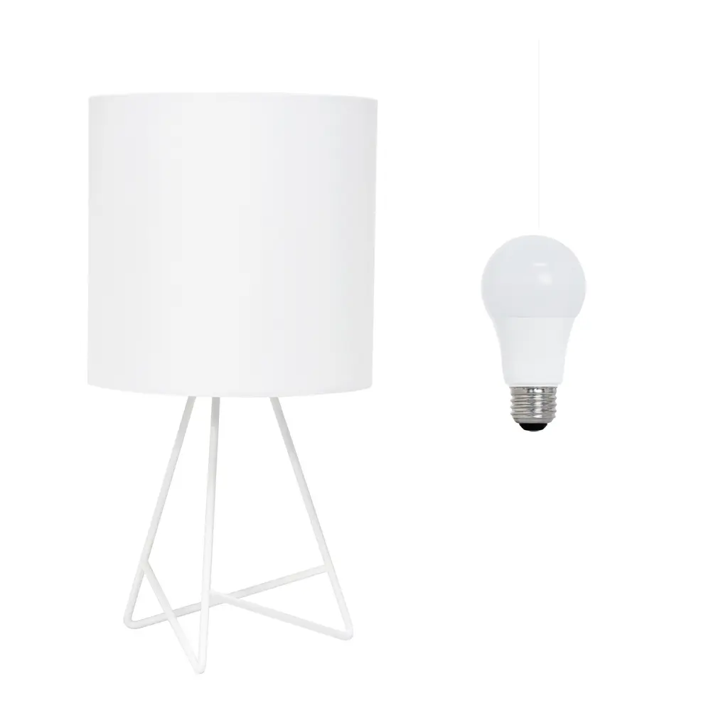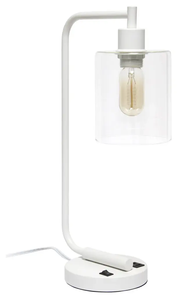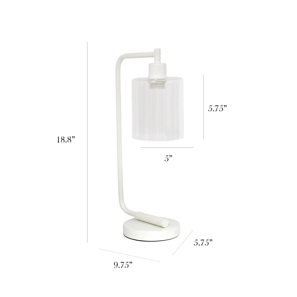 Simple Designs 18.8" Iron Lantern Desk Table Lamp With Glass Shade, Antique Brass, With Led Bulb - White