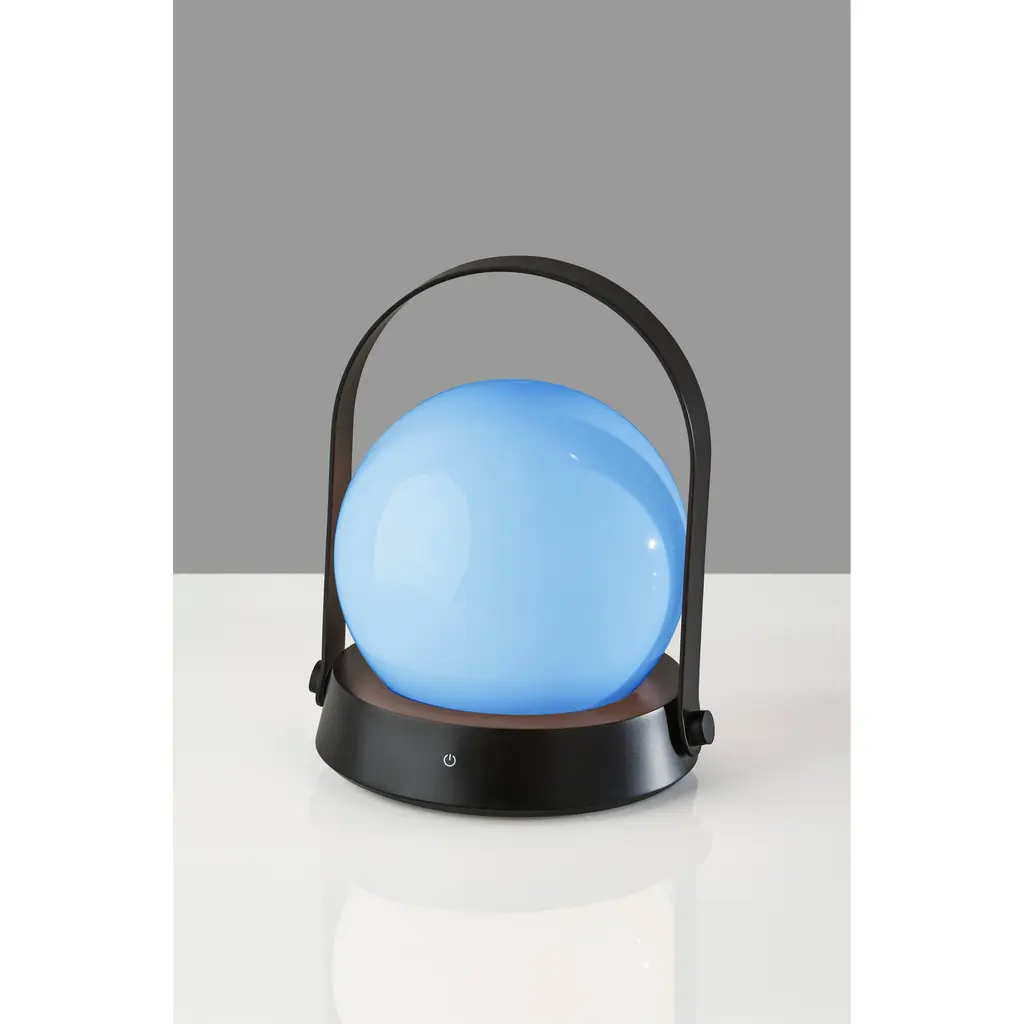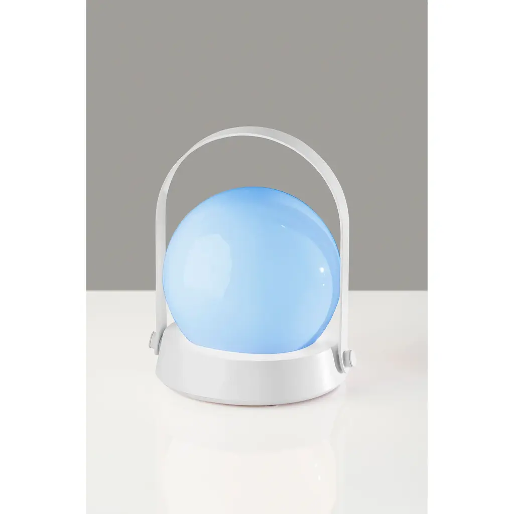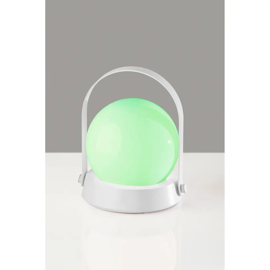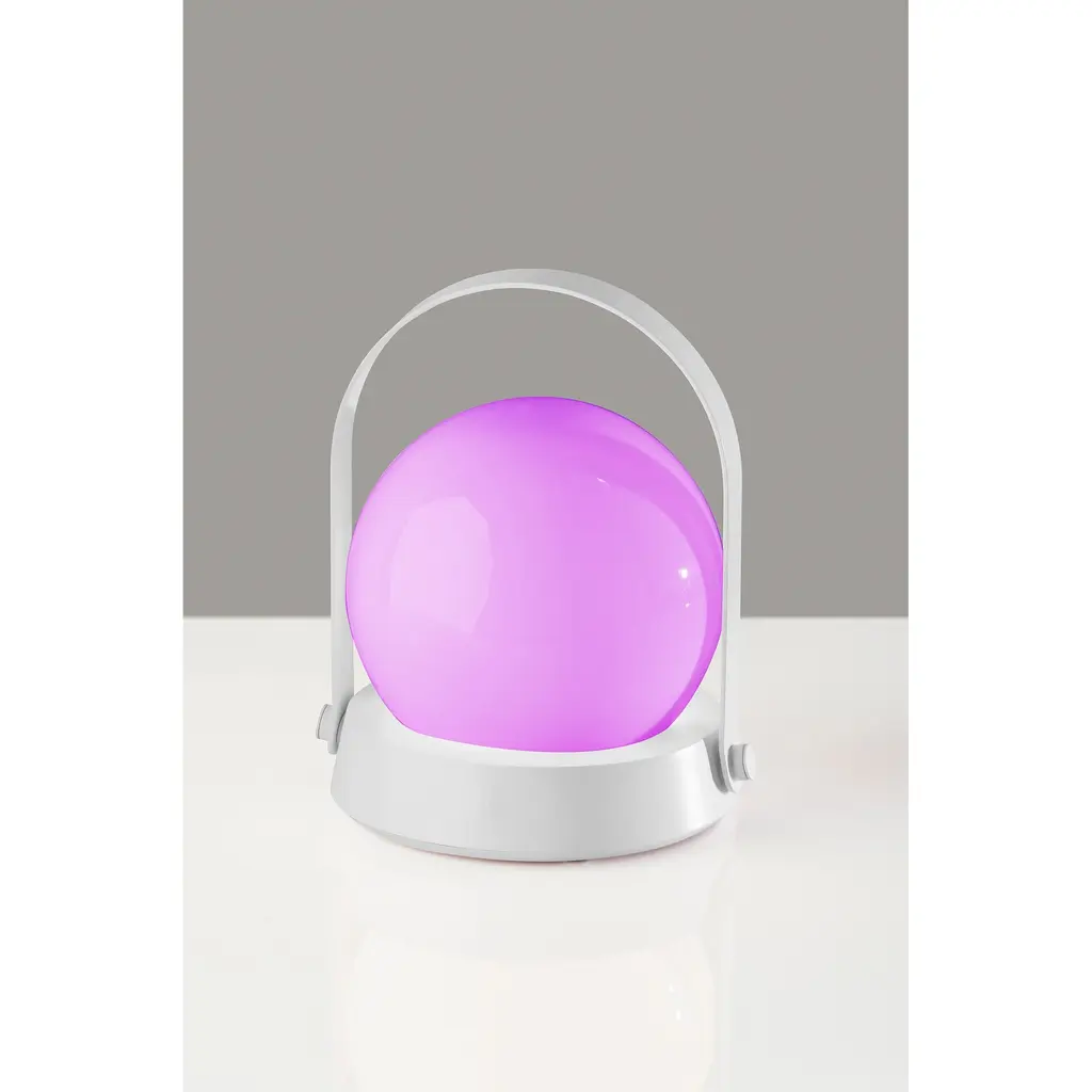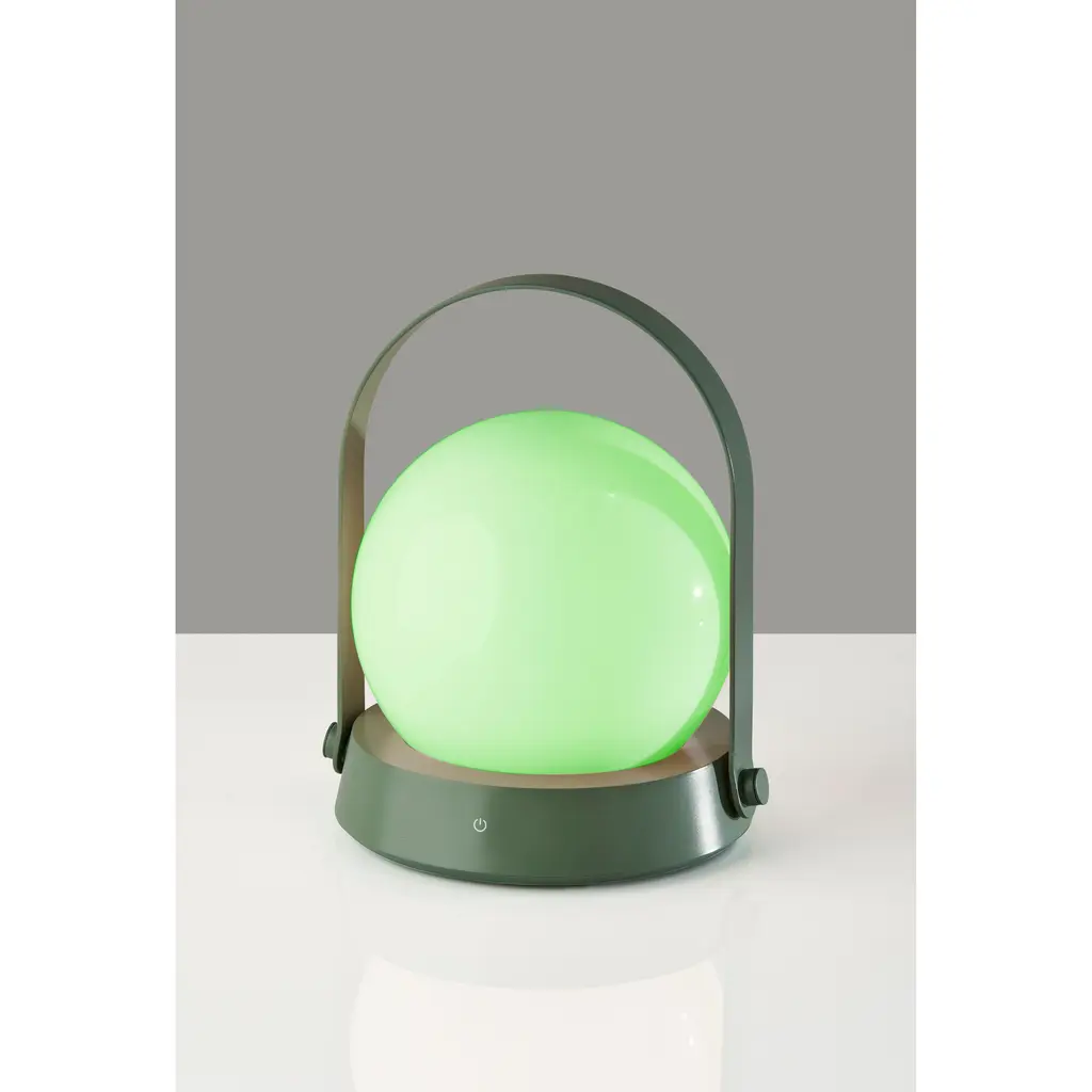 The Millie LED color changing table lamp is both versatile and fun. Place this in the bedroom as a nightlight or bring it outside for outdoor mood lighting. With a 39″ USB charging cord, it's simple to charge up to carry with you wherever it's needed. Offering three levels of regular white light and a wide range of colored light options on a convenient touch bar switch, this lamp is sure to satisfy your needs. With an outdoor certification for damp locations, this is the perfect addition to your backyard or camping setup. This lamp reaches a full charge after charging for about 2-3 hours, and the battery lasts for a minimum of 5 hours. This lamp is available in black and white finishes and coordinates perfectly with the Millie LED color changing table lamp. Features: White, Black or Sage Green Finish Rechargeable with a 39" USB Charging Cord - charge lasts for minimum of 5 hours Outdoor certified for damp locations A simple touch switch changes the light from Bright white, Red, Purple, Blue, Green, Yellow, Warm white Easy to carry around with a handle attached to the lamp ETL Listed li> CRI: 80; Color Temp: 3,000K; 150 Lumens 1-Year Limited Manufacturer Warranty Measurements: Height: 8.25-inch Width: 7-inches Extension/Depth: 7-inch Weight: 1.76lbs Shade Dimensions: 6" Dia Base Dimensions: 6.25"Dia. x 1.5"H.