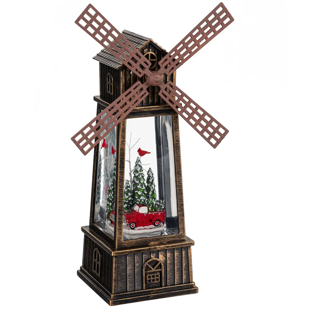 Snowbirds Led Table Decor Truck With Cardinals In Windmill Plastic Water Lantern, 12.25"h