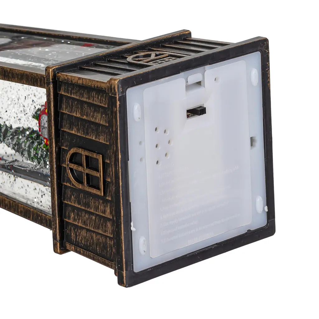 Deck the halls with this striking lantern. Crafted with the holidays in mind, this lantern blends functionality with aesthetics to create a warm and inviting ambiance. Featuring an elegant Christmas scene inside a traditional design, this lantern is perfect for the festive season. The soft glow it emits will brighten everyone’s spirits. This lantern is perfect for anyone looking to elevate their Christmas décor. It requires three AA batteries, not included.