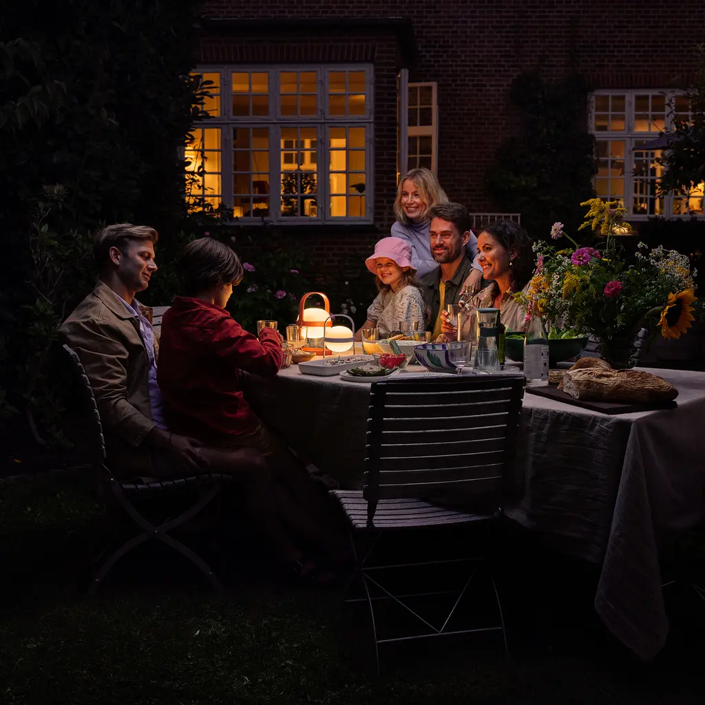 Warm, stylish, eco-friendly, and incredibly versatile, the Rosendahl Soft Spot Solar Lantern, Terracotta offers the perfect lighting solution for indoor or outdoor living spaces. Designed by Maria Berntsen, the Soft Spot solar lamps combine the minimalist aesthetics of Danish design with practical features and an environmentally conscious build. This version not only boasts a gorgeous terracotta color, but it’s also made from GRS-certified recycled materials to illuminate your home in a sustainable way. Additionally, the lantern’s battery is solar-powered, meaning that you can fully charge the lamp on a sunny day and enjoy up to 16 hours of light. A USB charging port provides an easy solution to charge the built-in battery on cloudy days or colder seasons. Designed with a practical handle, the Rosendahl Soft Spot Solar Lantern, Terracotta is conveniently portable. Thanks to the weather-resistant materials, you can take it from a bedroom to a terrace or use it as a “candlelight” for al fresco dinners in a garden. The lamp also features a dusk sensor for automatic lighting. Available in Small and Large sizes, the Rosendahl Soft Spot Solar Lantern, Terracotta provides an elegant way to create a cozy mood in any room or outdoor area.