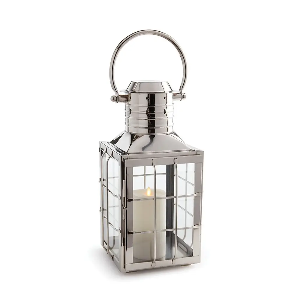 Solar-powered Lantern With Led Candle - Horizontal Silver