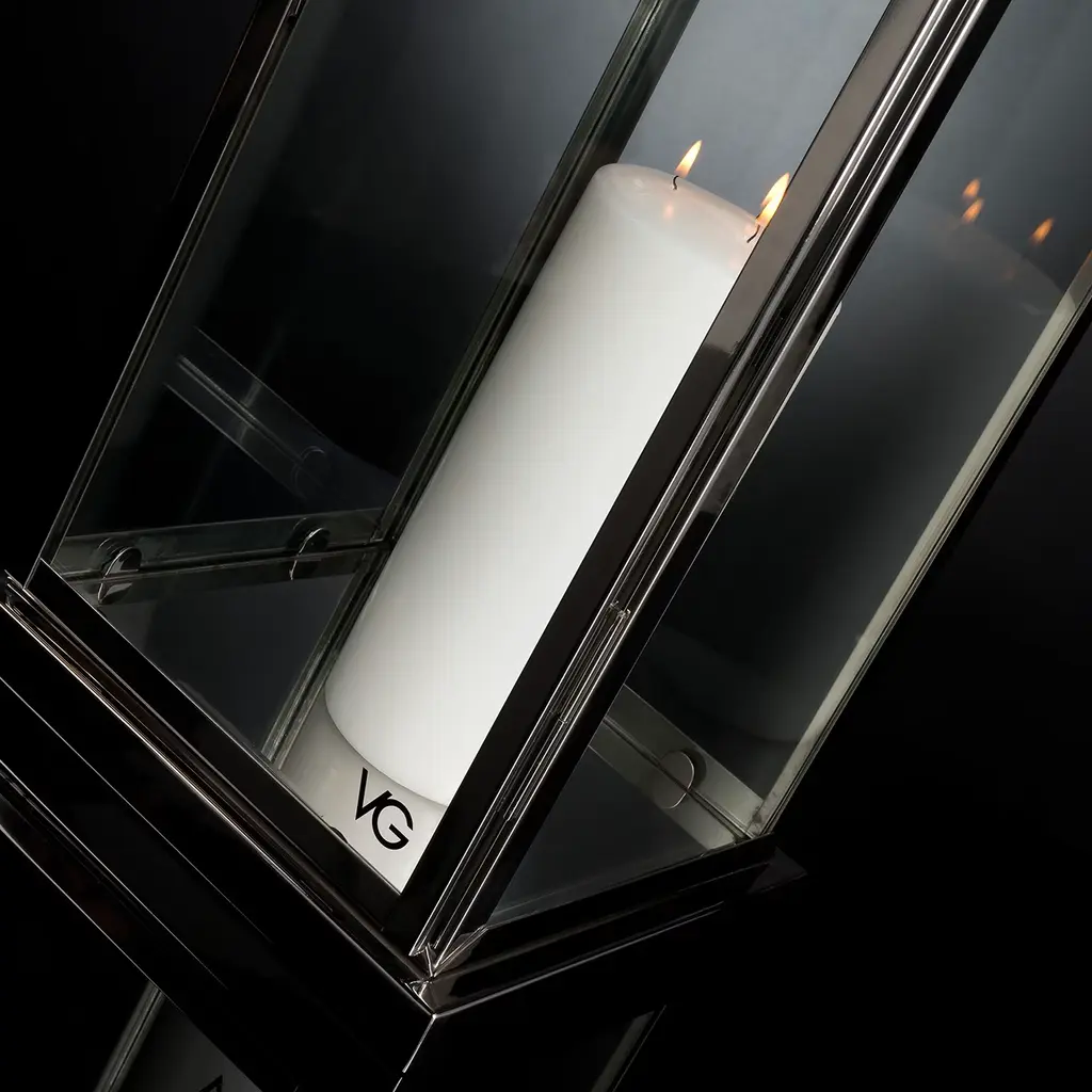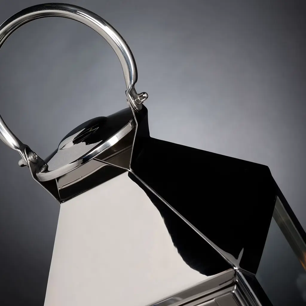 Be it a terrace, patio, or pool area, this lantern is sure to create an intimate and relaxing ambiance especially if combined with twins. Its simple design is enlivened by the pyramid cut of the top, which is also equipped with a ring element for easy carriage. Crafted of stainless steel and offered in a glossy finish, it ensures optimum weatherability. Candles are not included.