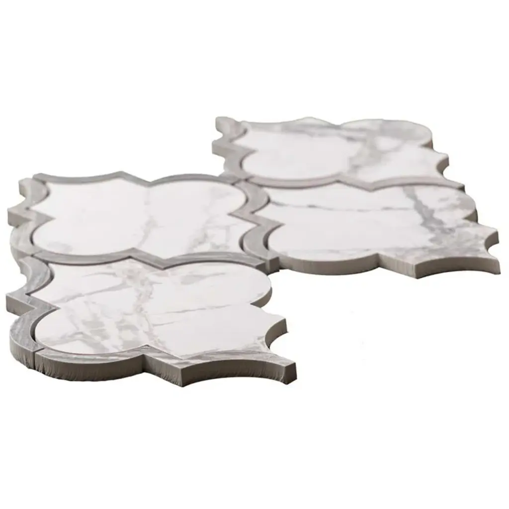 The Tile Life's Stately Lantern line offers three elegant tile options: Calacatta, Calacatta/Gray, and Gold. These cultivated tiles come in varying traditional shades with stunning bold outlines, highlighting the tile's timeless elegance. Our Stately Lantern tiles mimic art as they are beautifully arranged into an intricate Moroccan-shaped pattern. Its attractive polished finish creates an effervescent gloss on its high-quality porcelain. Place this tile in any kitchen, bathroom, foyer, fireplace, or shower wall to create a captivating focal point in any room.