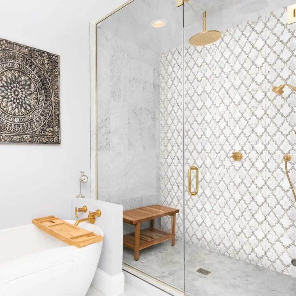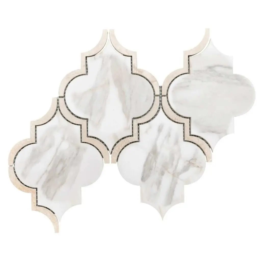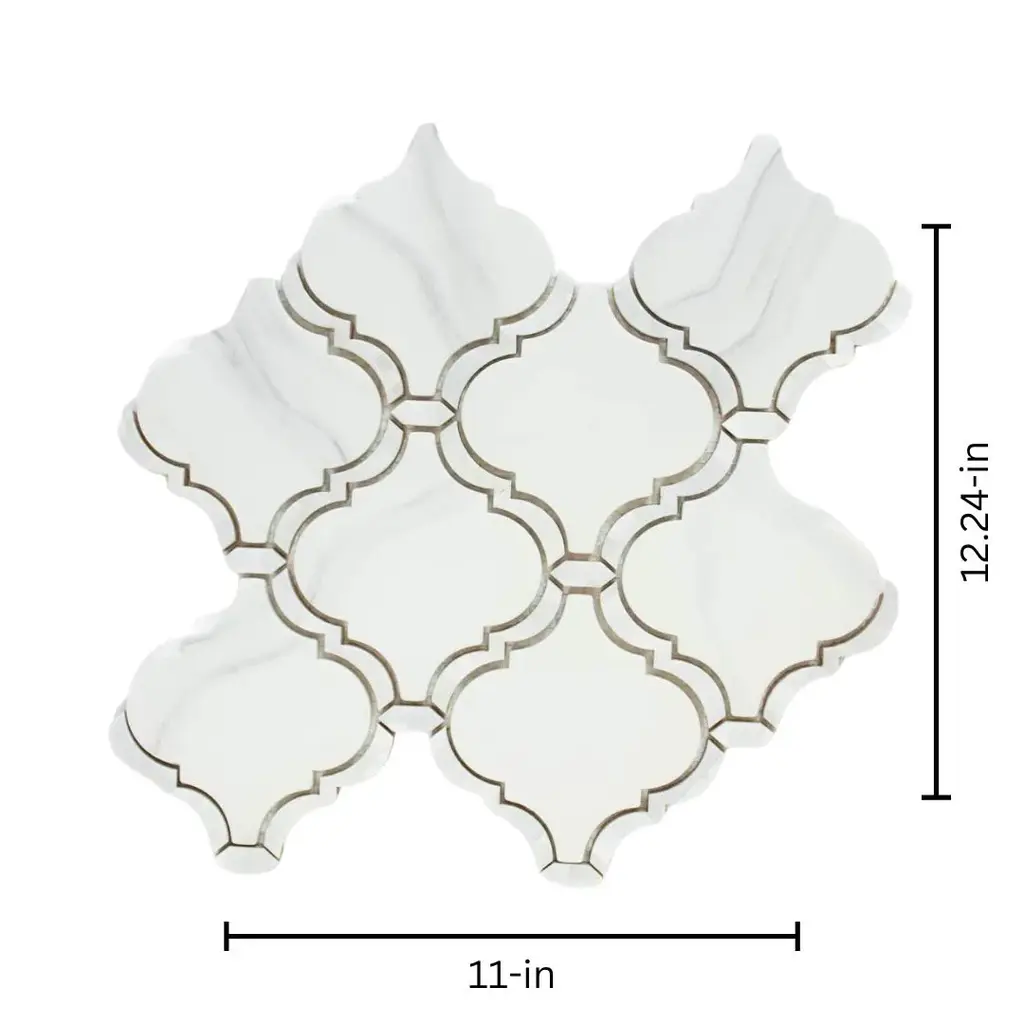 The Tile Life's Stately Lantern line offers three elegant tile options: Calacatta, Mountain Treasure, and Gold. These cultivated tiles come in varying traditional shades with stunning bold outlines, highlighting the tile's timeless elegance. The Tile Life Stately Lantern 9 inches x 14 inches Porcelain tiles mimic art as they are beautifully arranged into an intricate Moroccan-shaped pattern. Its attractive polished finish creates an effervescent gloss on its high-quality porcelain. Place this tile in any kitchen, bathroom, foyer, fireplace, or shower wall to create a captivating focal point in any room. FEATURES:DIMENSIONS:
