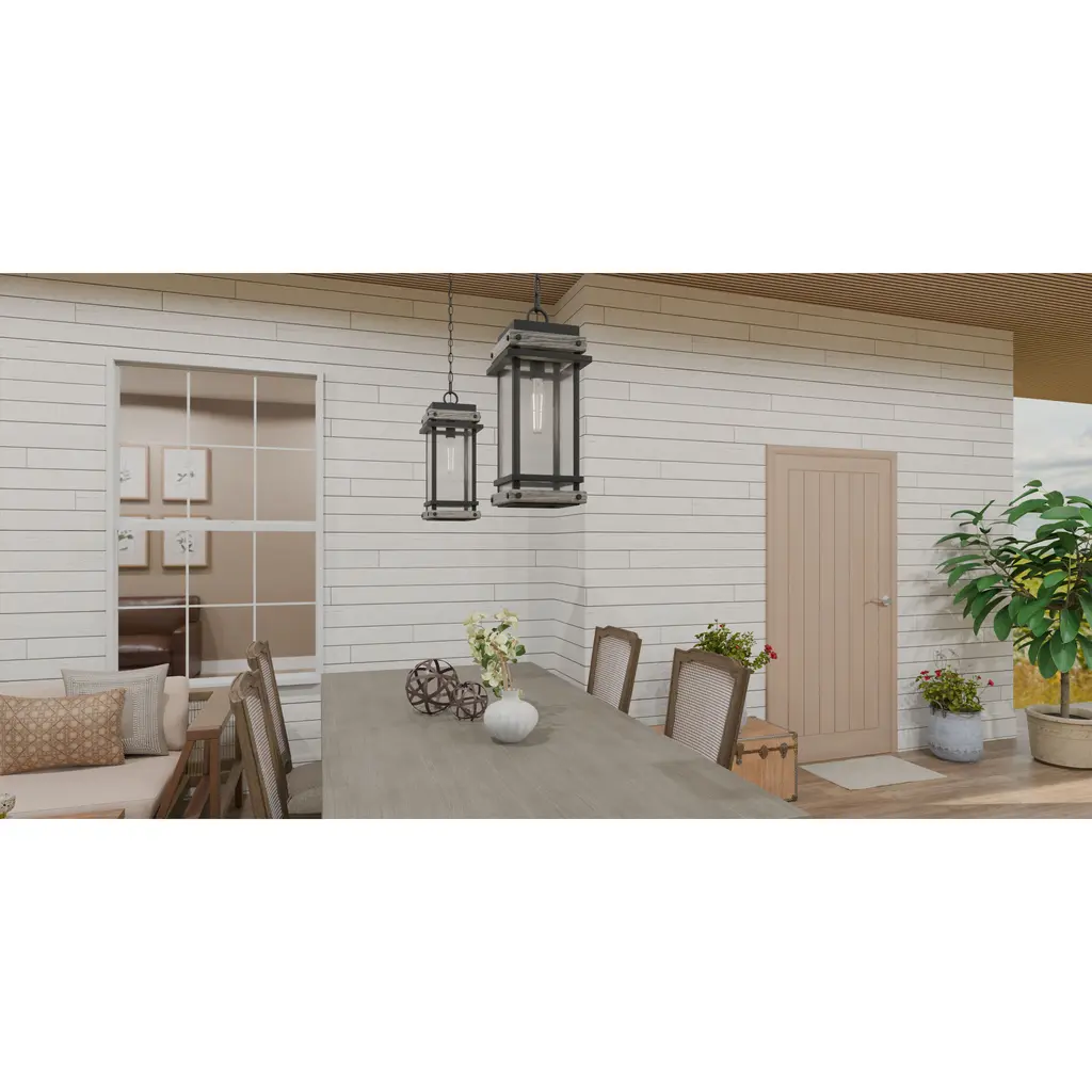 Create a lasting impression with Strader outdoor lanterns. A matte black frame and distressed wood accents pair with clear seedy glass panels for a farmhouse-ready look. Available as a hanging lantern or in various sizes of wall lantern, Strader is an easy way to add stylish illumination to a front porch or landscape.